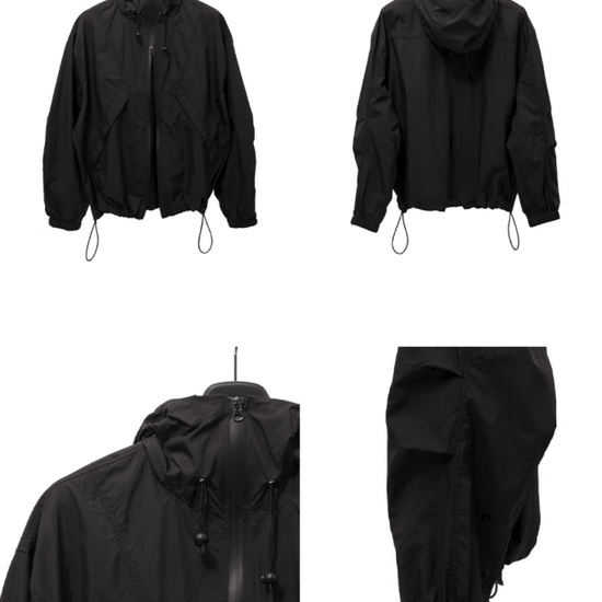 Introducing RT No. 10874, a black outdoor hooded sports tech jacket designed for active days outdoors. This zip-up outerwear blends practical coverage with a clean, modern look.