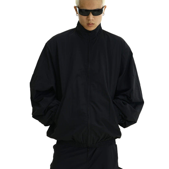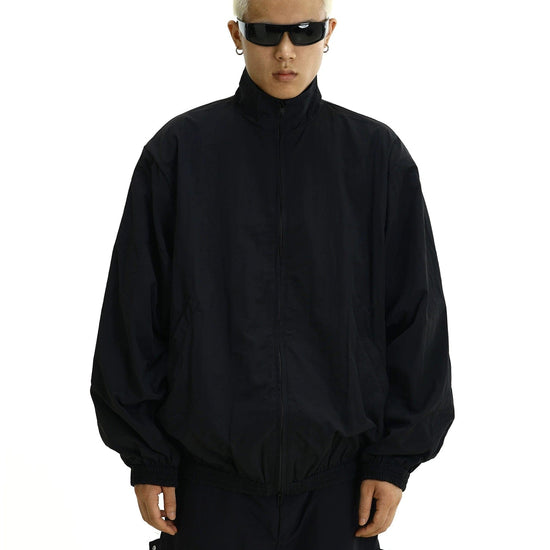Designed with a stand collar and full-zip closure, this jacket offers a refined look with practical warmth. The loose fit enables comfortable layering over tees, knits, or lightweight sweaters.