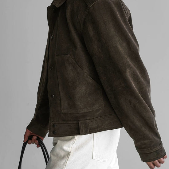 - Suede collar detail adds a refined, textured touch to any ensemble.