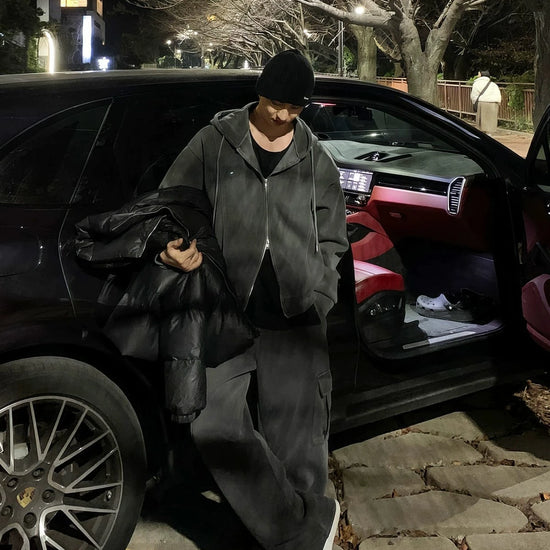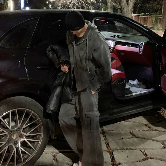 RT No. 12322 ZIP-UP HOODIE & CARGO SWEATPANTS is a versatile two-piece set designed for comfort and everyday style.