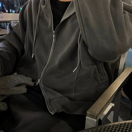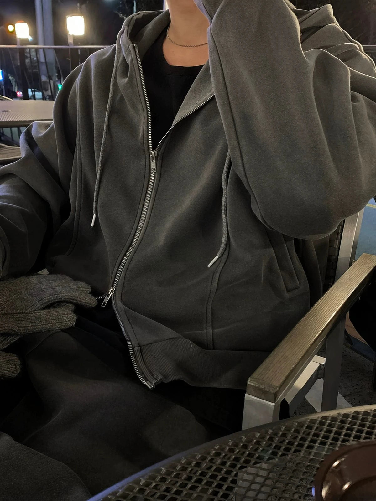 - Zip-up hoodie with a front zipper closure for easy on/off and adjustable warmth.