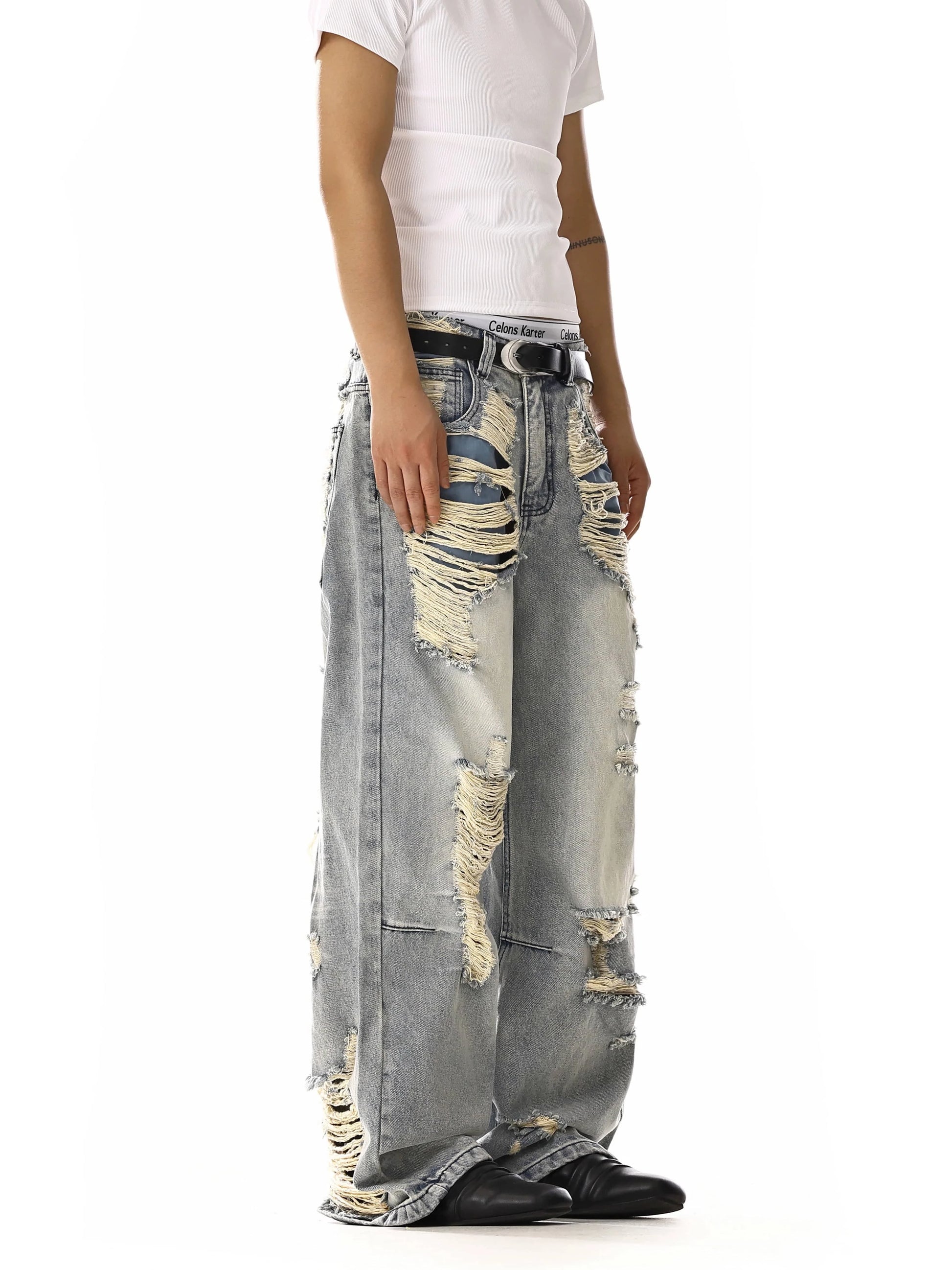 RT No. 18125 LIGHT BLUE DISTRESSED DENIM JEANS