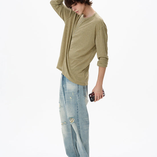 Elevate your casual capsule with RT No. 18138—blue distressed denim straight jeans that offer comfort, durability, and year-round style.