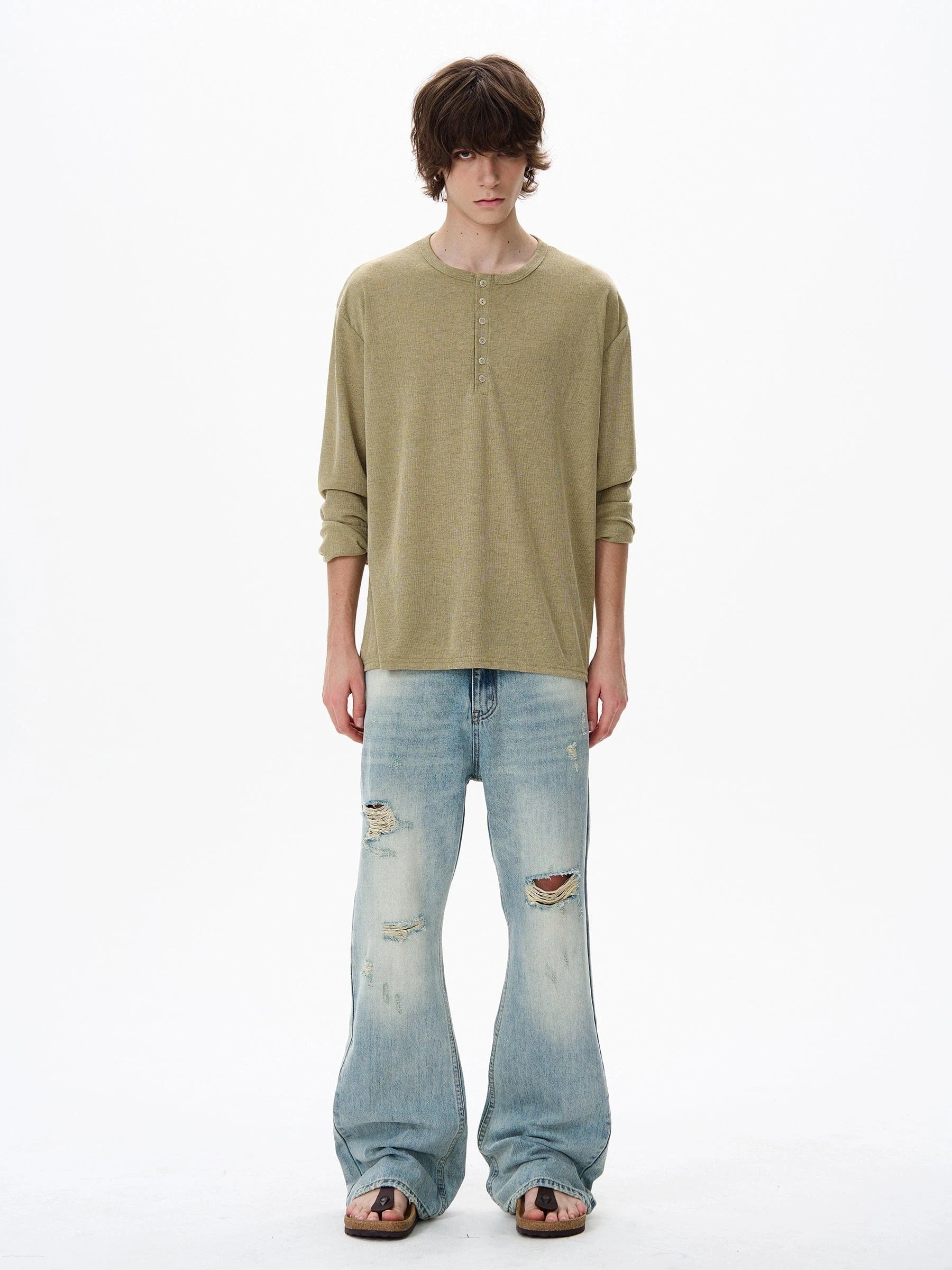 RT No. 11061 KNITTED HENRY COLLAR LONGSLEEVE SHIRT