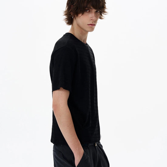 Introducing the RT No. 18190 Knit Collar Short Sleeve—a versatile top designed for everyday wear. The knit collar adds a refined detail to a casual silhouette, making it suitable for layering or wearing on its own.