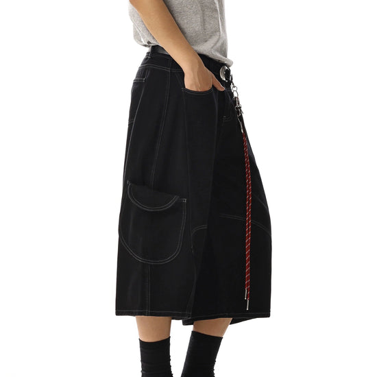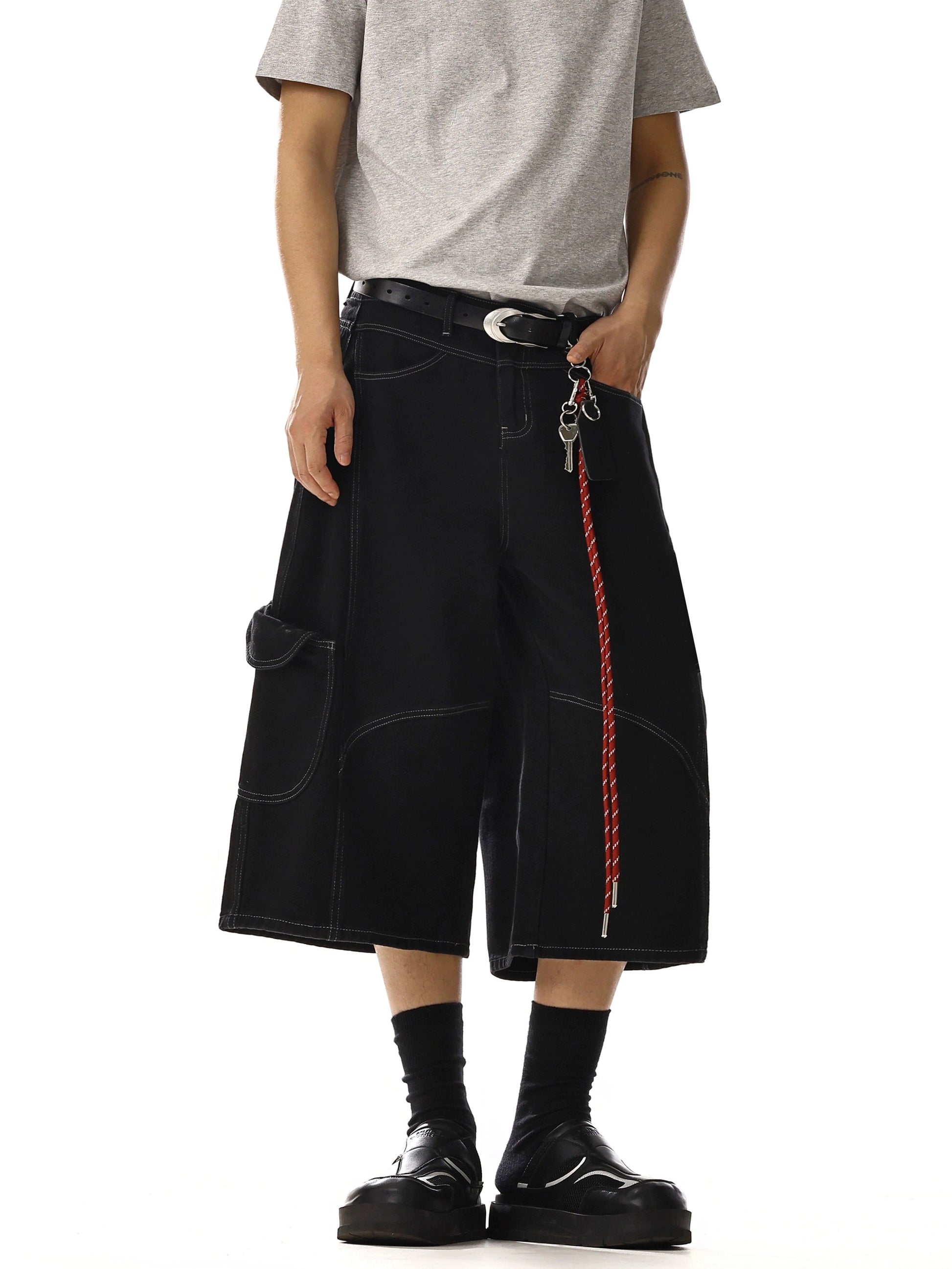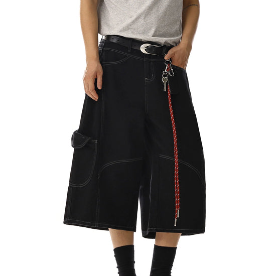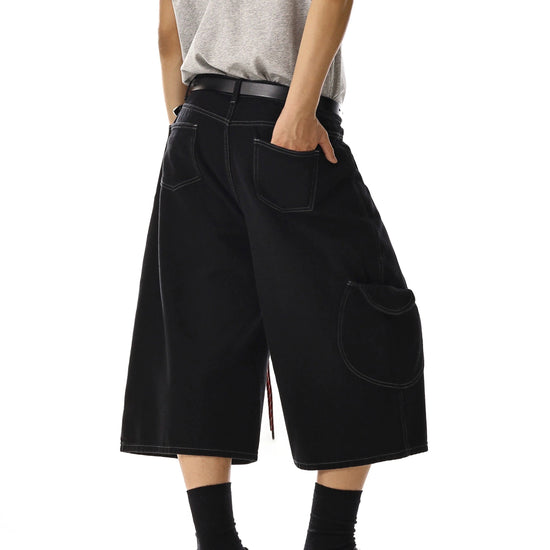 RT No. 18226 Reconstructed Denim Cargo Shorts fuse rugged utility with a modern silhouette. Made from denim and finished with an outline stitch, these shorts are built for daily wear while keeping a clean, contemporary look.