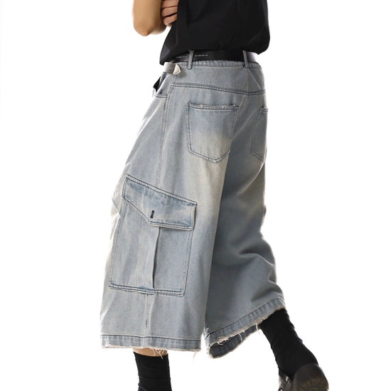 This pair blends a long shorts silhouette with a cargo-inspired design and a wide fit, offering comfortable movement and a relaxed, on-trend look.