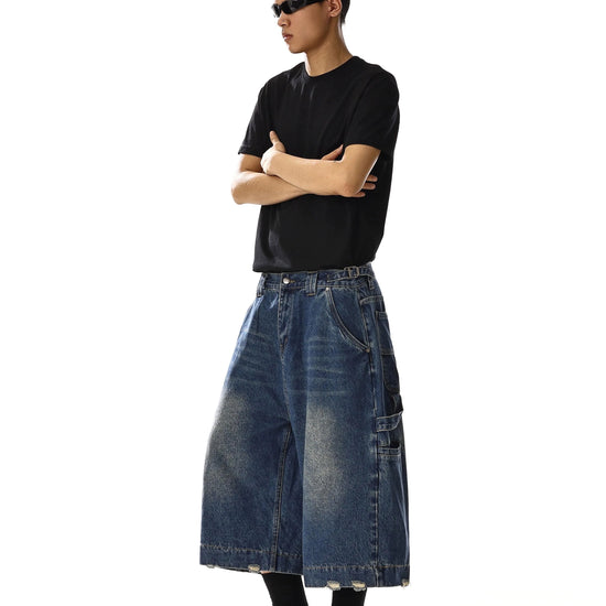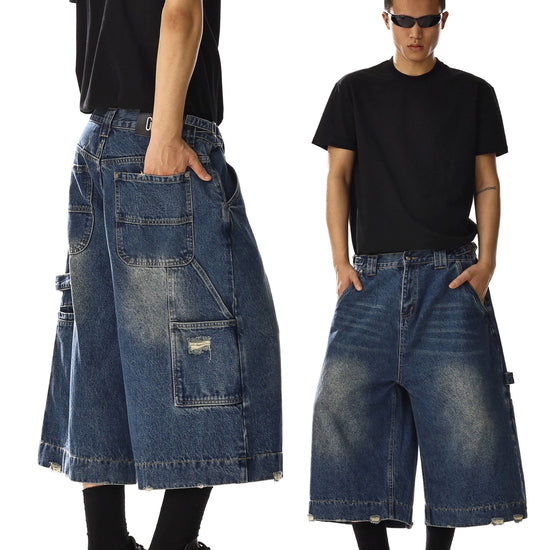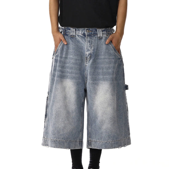 RT No. 18239 Carpenter Denim Shorts are a versatile staple that blends rugged denim with functional carpenter styling. Featuring a distressed finish and a washed look, these shorts deliver a casual, ready-to-wear aesthetic for warm weather. Available in two color options to suit your wardrobe.