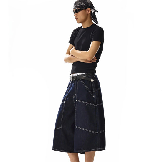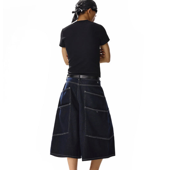RT No. 18250 BLUE UTILITY WIDE SHORTS are designed for practical, everyday style. This blue utility short features a wide straight fit and standout outline stitching for a contemporary, crafted look.