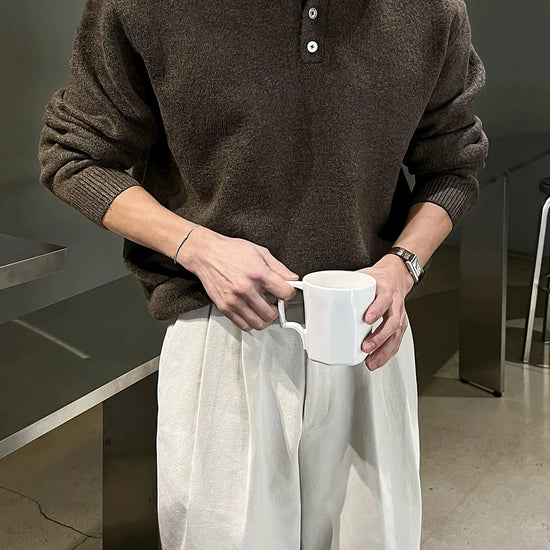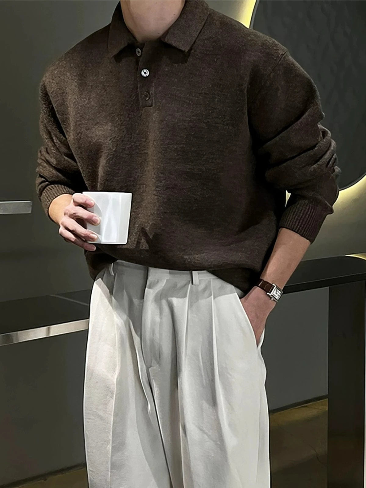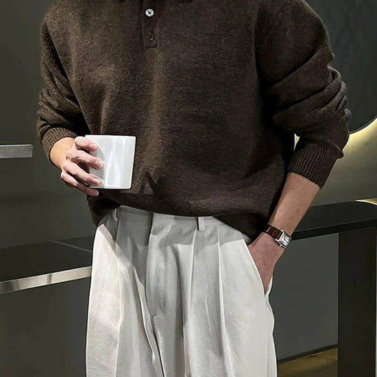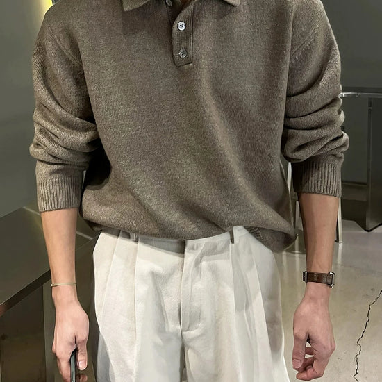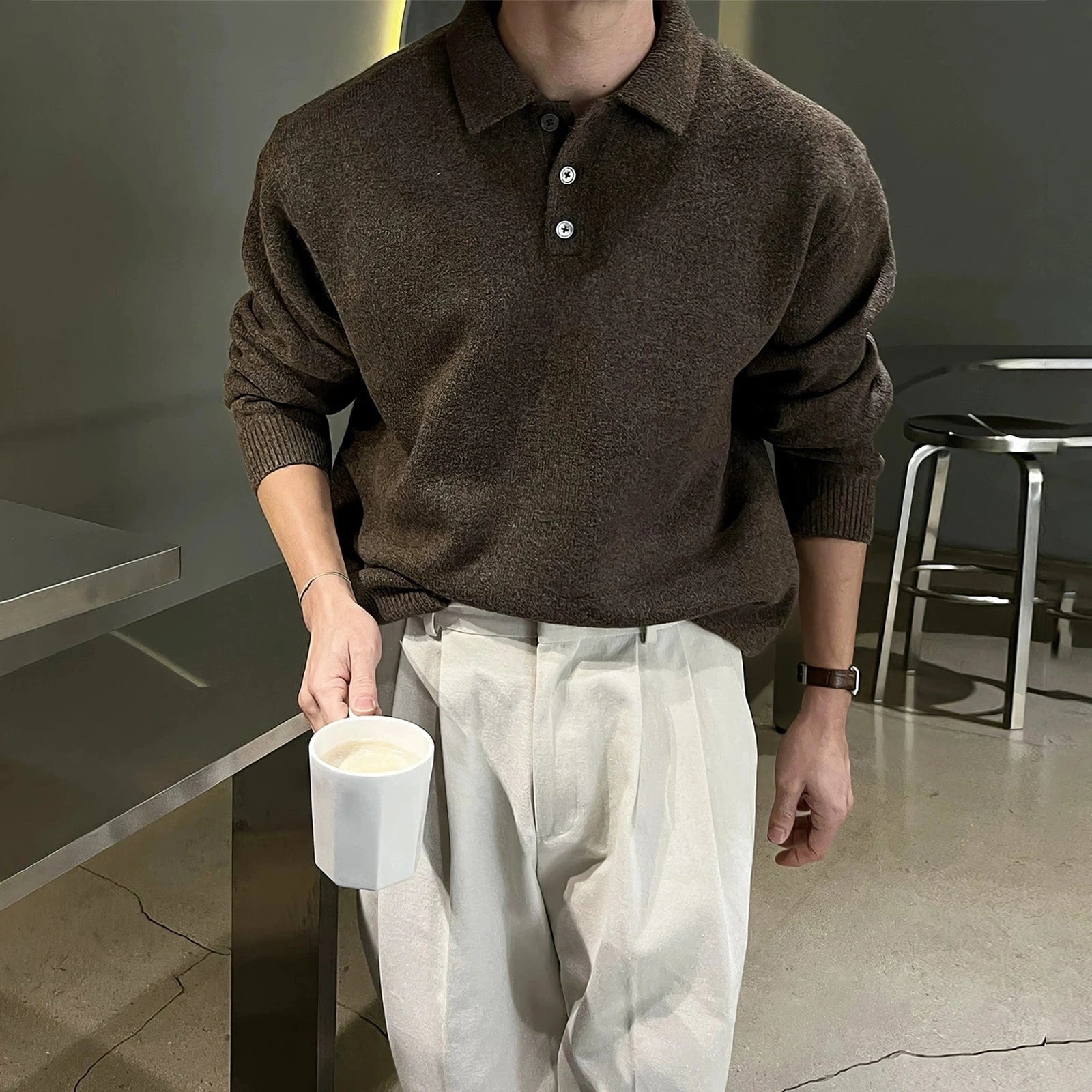 Elevate your everyday wardrobe with RT No. 18255 Knit Polo Collar Sweater, a refined knitted pullover built for comfort and style. The polo collar adds a touch of smart-casual polish, while the long sleeves and clean silhouette make it a versatile staple you can dress up or down.