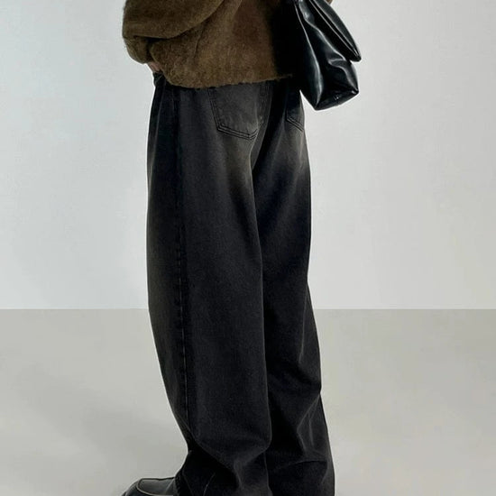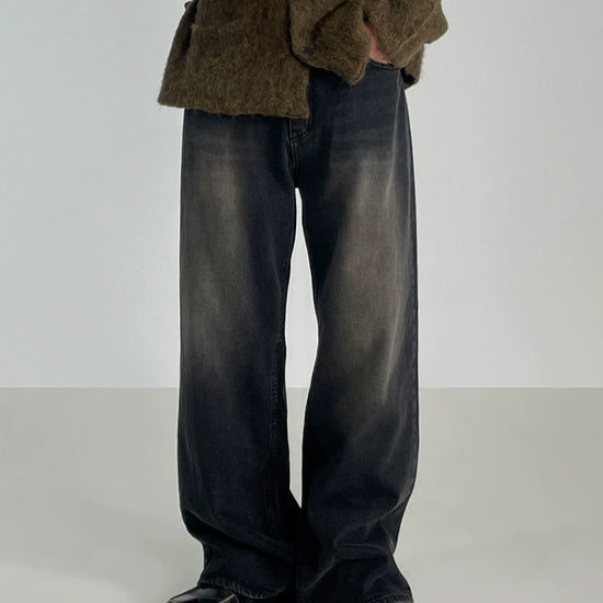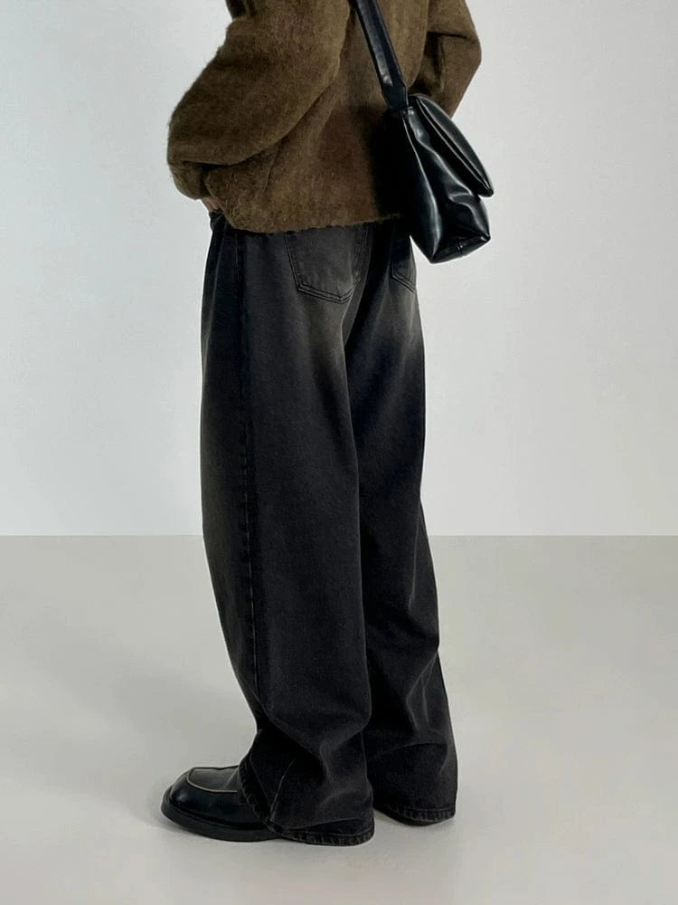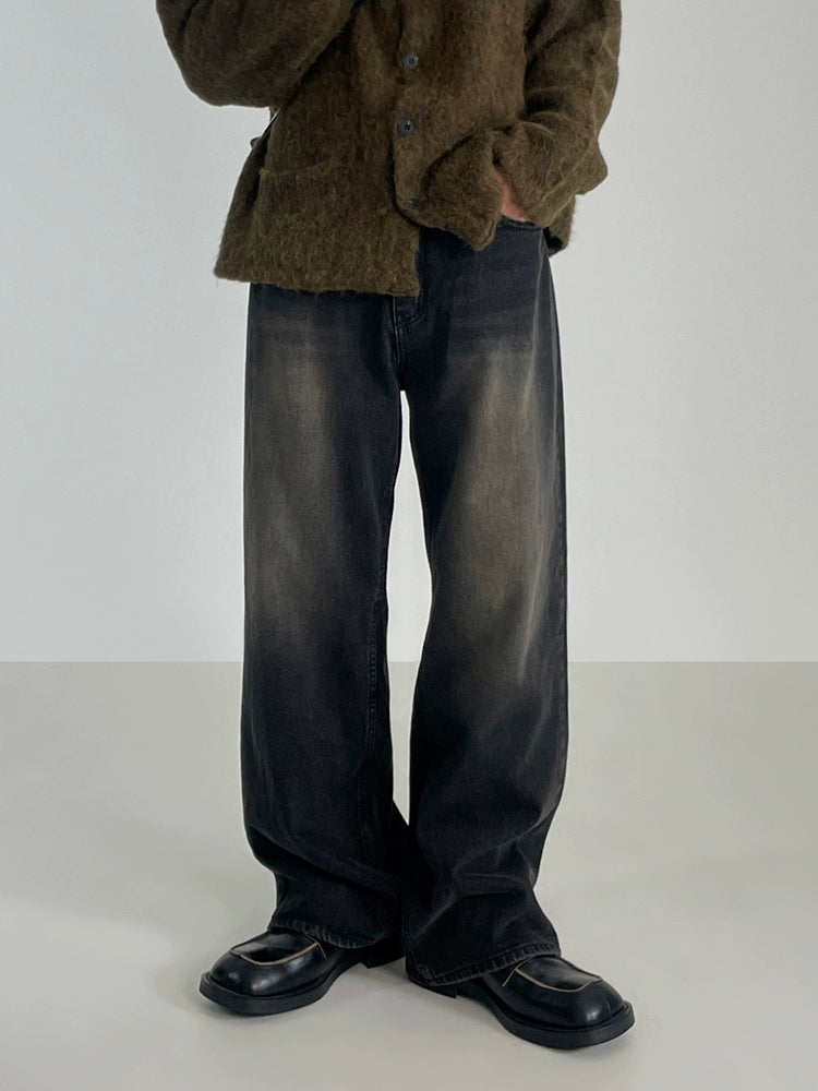 RT No. 7002 WASHED BLACK WIDE STRAIGHT DENIM JEANS
