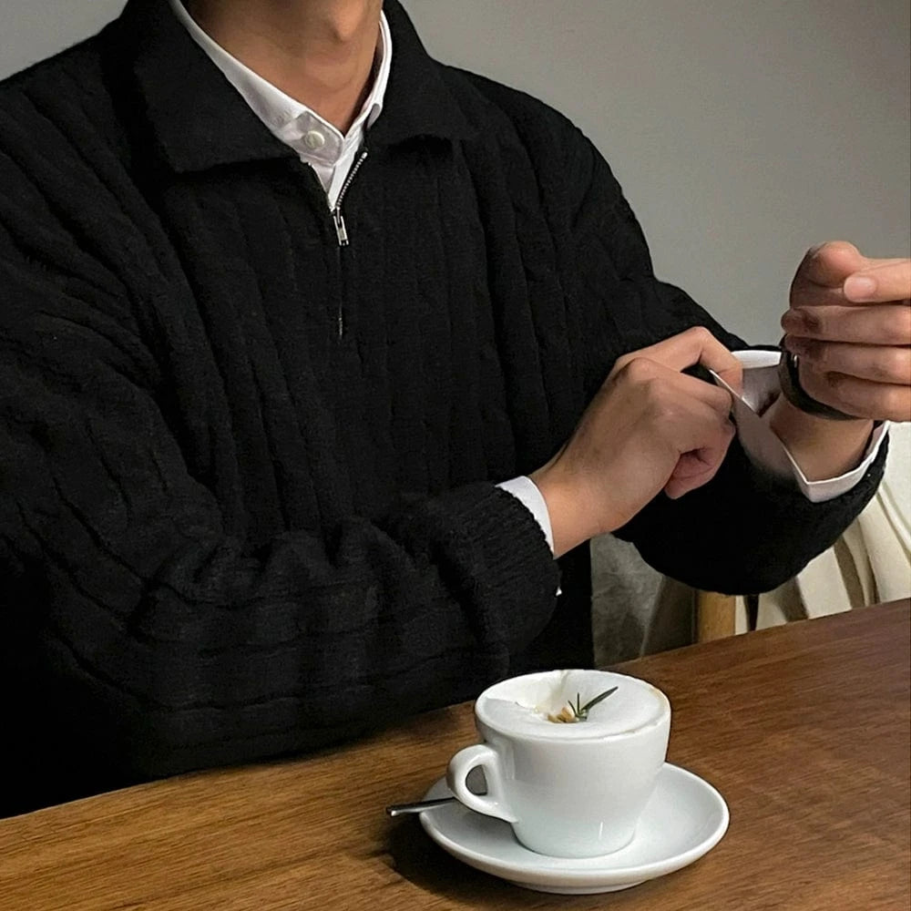 Upgrade your everyday outfits with this twist knit quarter zip sweater, a reliable staple for transitions between casual and smart-casual settings.