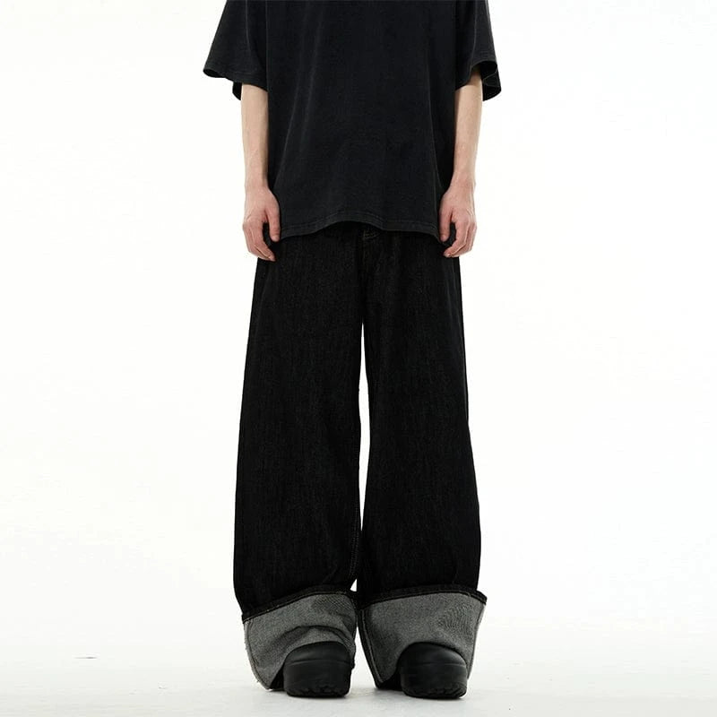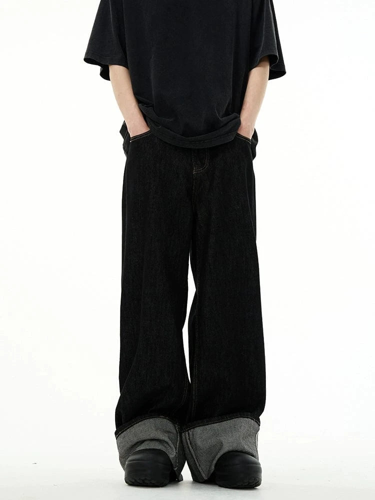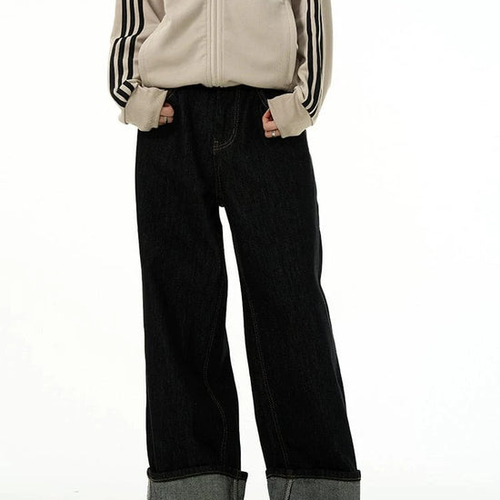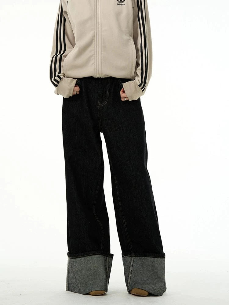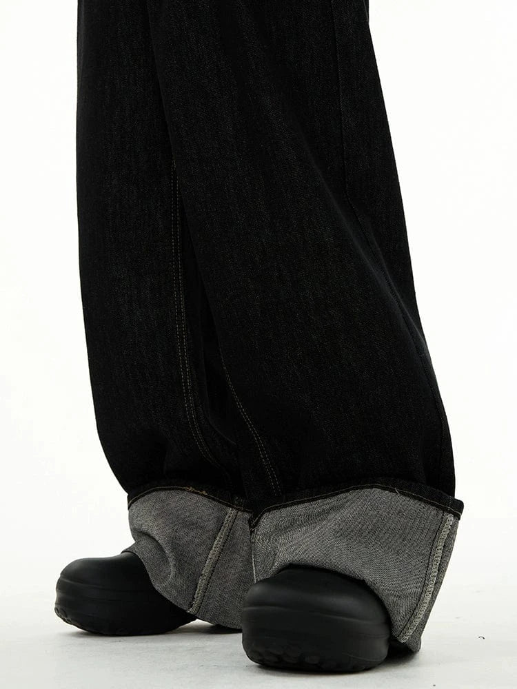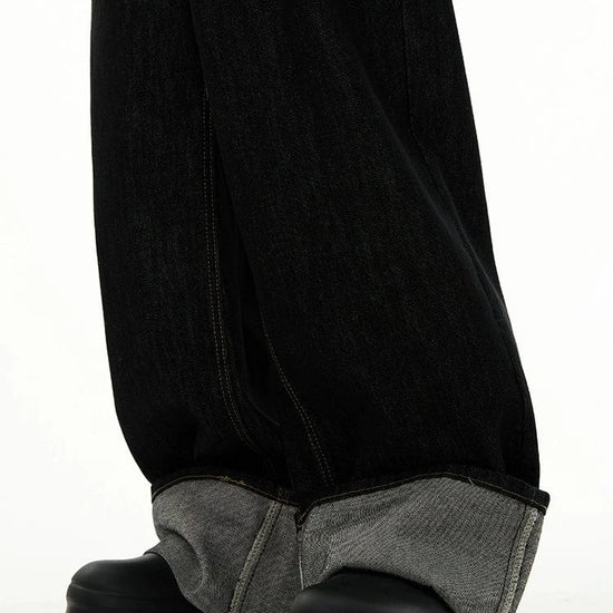 RT No. 18703 BLACK FOLDED RELAX STRAIGHT DENIM JEANS