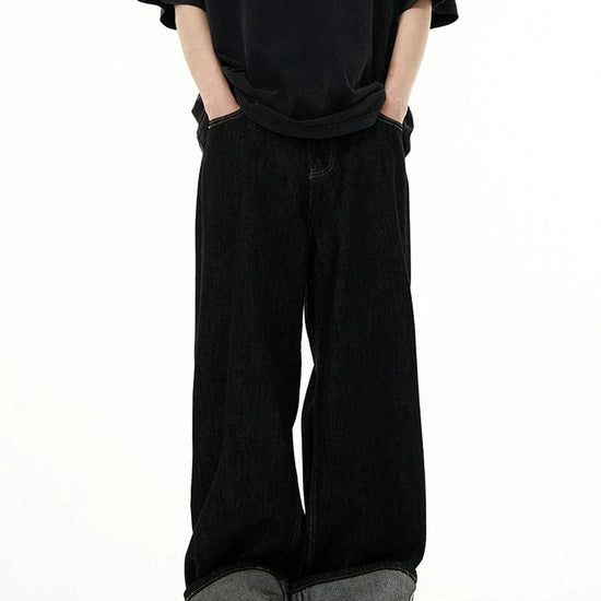 RT No. 7002 WASHED BLACK WIDE STRAIGHT DENIM JEANS