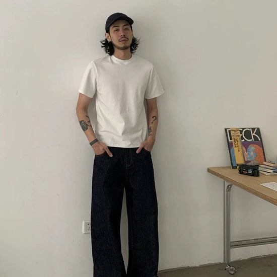 RT No. 18736 DARK BLUE DENIM STRAIGHT JEANS offer a timeless silhouette in rich dark blue denim. The straight fit provides a clean, versatile look that works across casual and smart-casual settings.