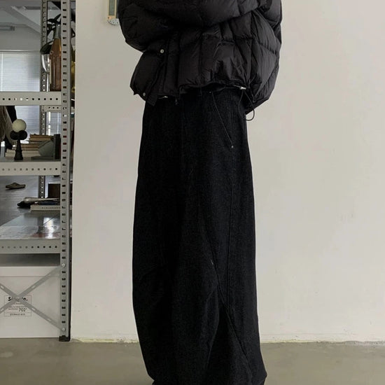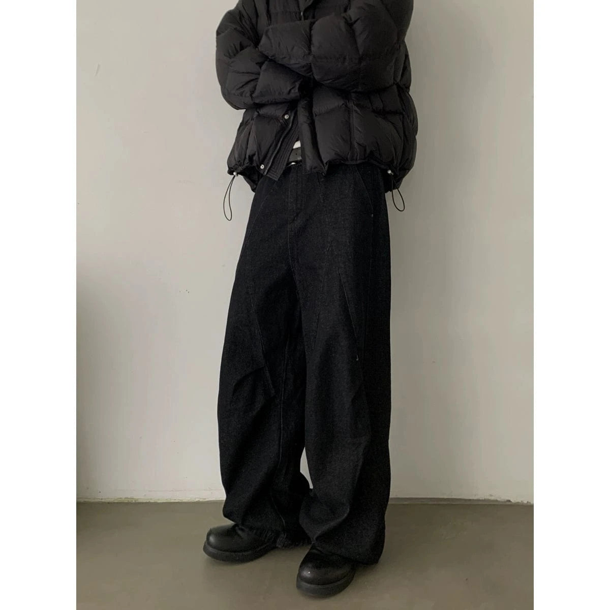 Introducing RT No. 18755 SILHOUETTE PLEATED DENIM JEANS — a refined addition to any wardrobe. The silhouette features folded pleats that create subtle volume and movement, set in black denim for a versatile, modern look.