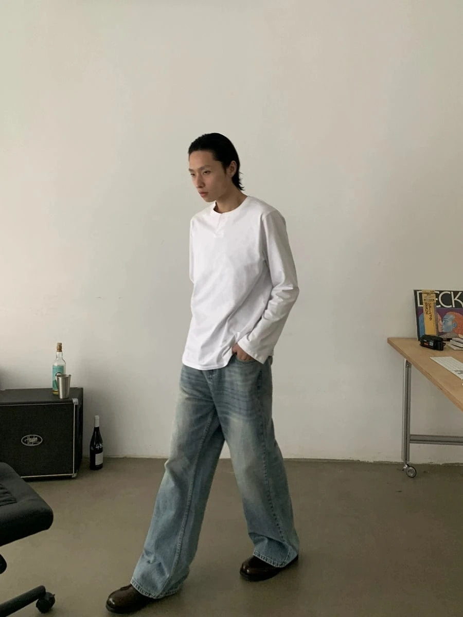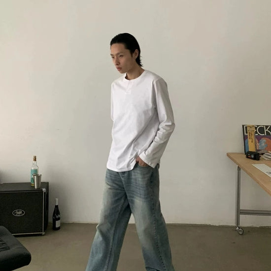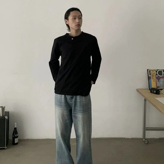 RT No. 18824 HENRY COLLAR LONGSLEEVE is a versatile longsleeve shirt designed for everyday wear. It features a Henry collar for a modern touch, a relaxed loose fit for comfortable movement, and long sleeves for year‑round styling. Available in two color options to suit your wardrobe.