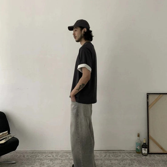 RT No. 18834 Cloud Gray Baggy Straight Jeans are crafted in cloud gray denim with a relaxed, baggy silhouette and a classic straight leg. This design pairs comfort with a timeless silhouette for versatile styling.