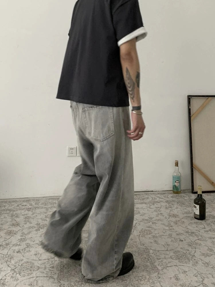 RT No. 18834 CLOUD GRAY BAGGY STRAIGHT JEANS