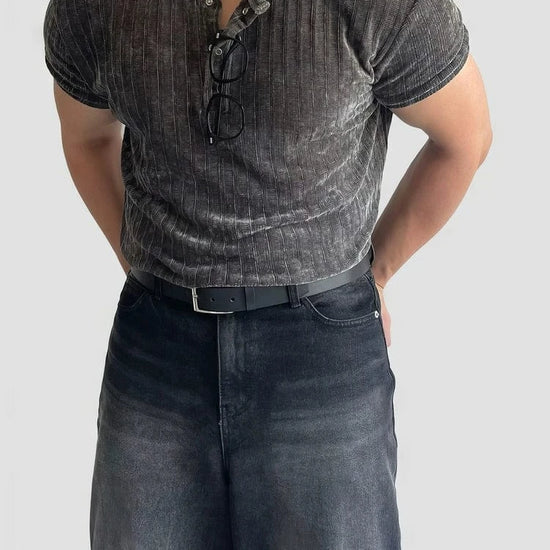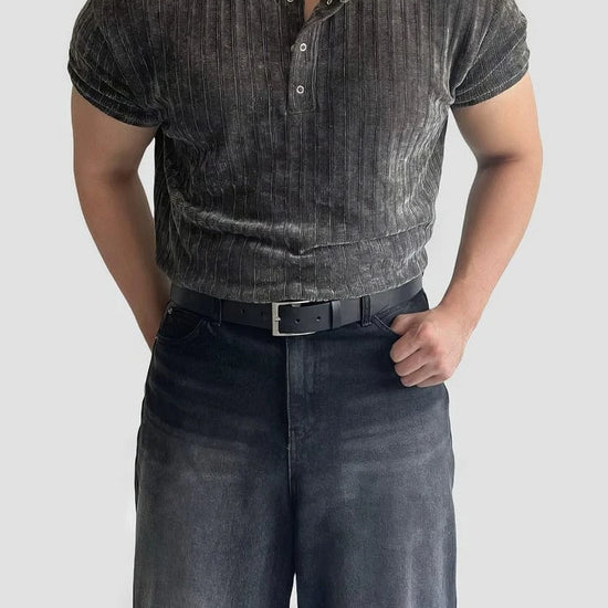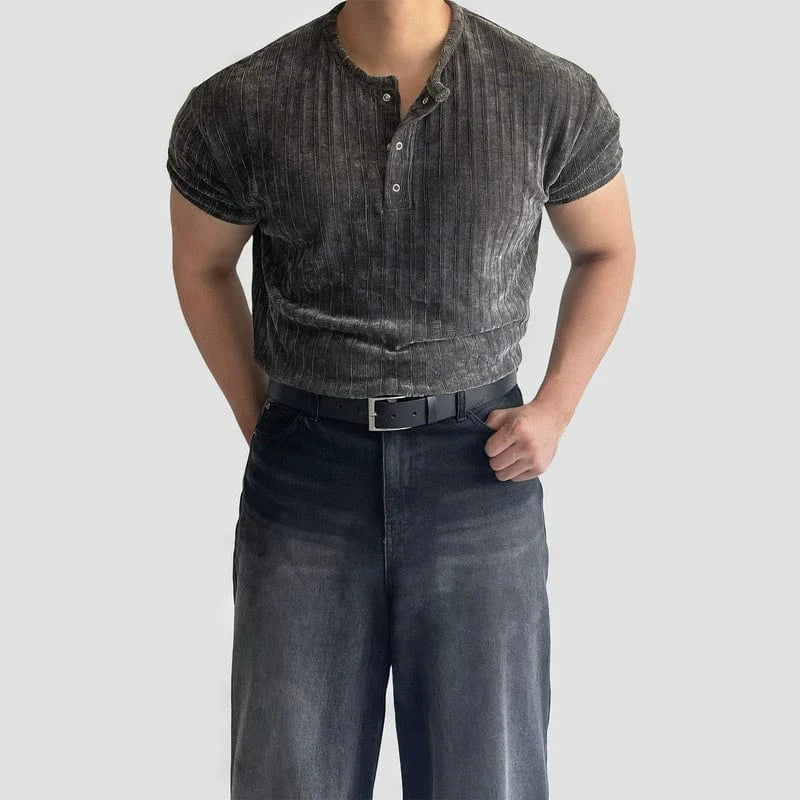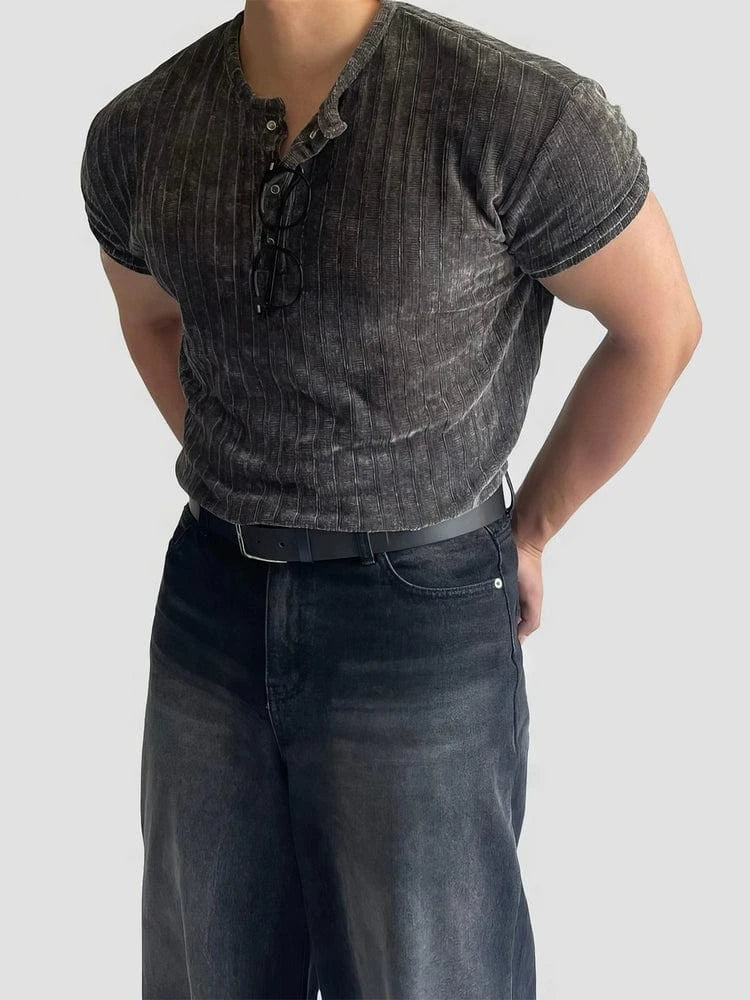 Meet RT No. 19030 Gray Henry Collar Knit Short Sleeve — a versatile knit top that elevates casual outfits with a clean, modern silhouette. In a classic gray shade, this short-sleeve knit delivers comfortable wear for a range of settings, from weekend errands to relaxed days at the office.