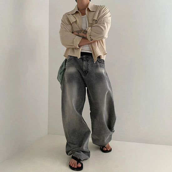 RT No. 19035 Washed Baggy Straight Jeans blend laid-back style with everyday durability. The washed denim finish adds character, making these jeans a versatile staple that pairs smoothly with tees, hoodies, and jackets across seasons.