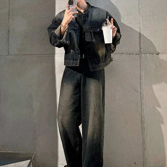The washed denim finish delivers a soft, worn-in feel and classic style, while the button-up jacket offers easy layering and enduring appeal. A coordinated denim pair completes the set for a cohesive, go-anywhere look.