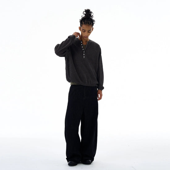 RT No. 19526 HOLLOW KNIT HALF BUTTON-UP SWEATER