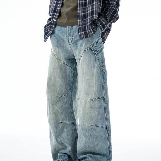RT No. 19564 Carpenter Denim Blue Baggy Jeans bring a carpenter casual aesthetic to your everyday wardrobe. Crafted in durable blue denim, this unisex jean combines a straight-fit silhouette with a relaxed, baggy vibe for versatile, all-day wear.