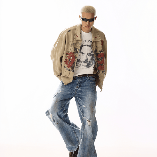 These jeans feature a wide style with a straight fit through the leg, delivering relaxed comfort without sacrificing a sharp, put-together look. The distressed detailing adds character that works across casual outfits.