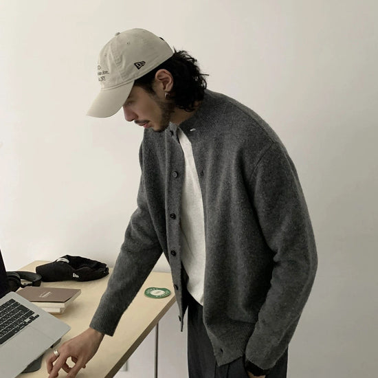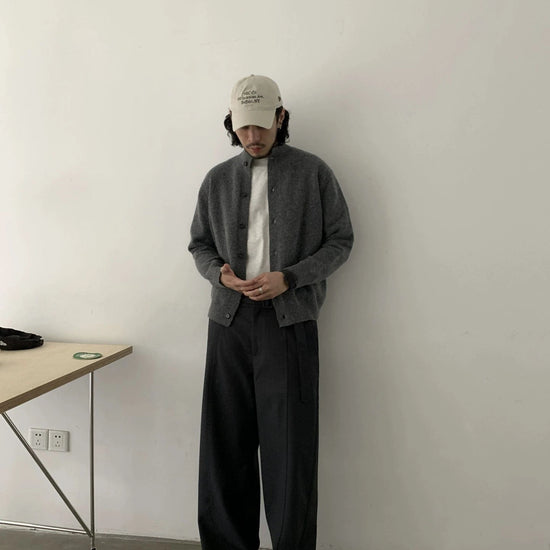 RT No. 19844 Gray Knit Cardigan Sweater offers a refined layer for everyday wear. This knitted cardigan in a versatile gray tone features a button-up front and a mock-neck, delivering a clean, modern look that pairs with everything from tees to crisp shirts.