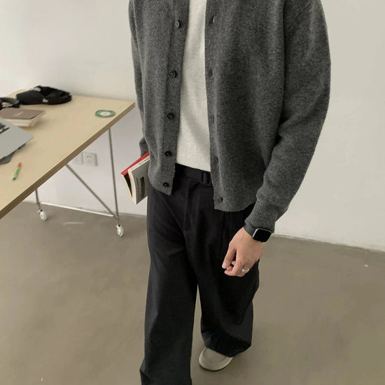 Designed to be a reliable go-to layer, this gray knit cardigan sweater provides comfort and timeless style for seasons to come.