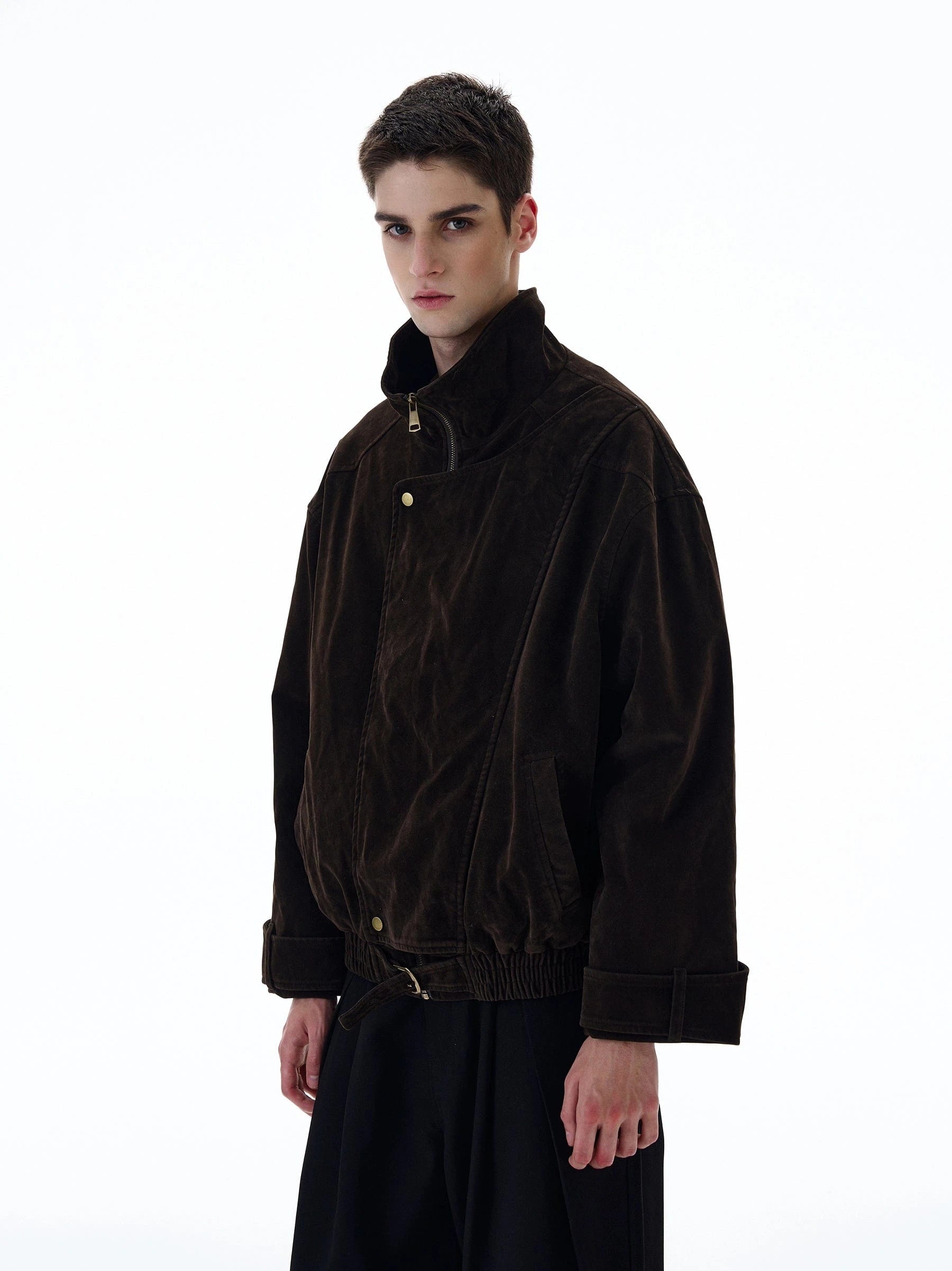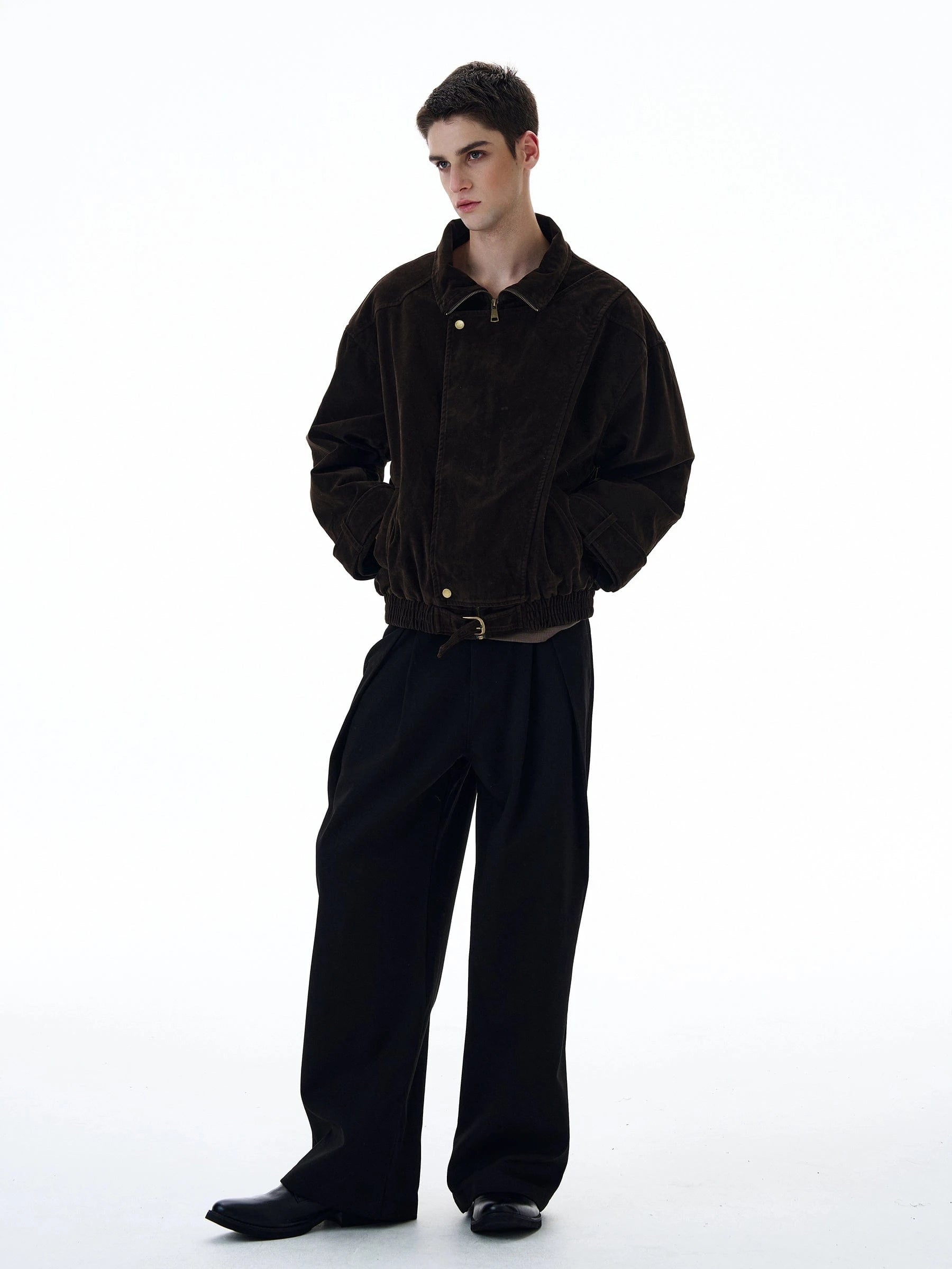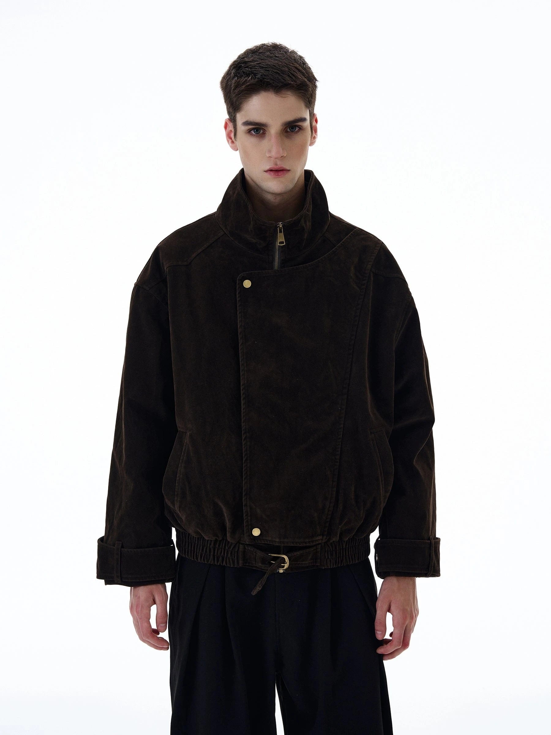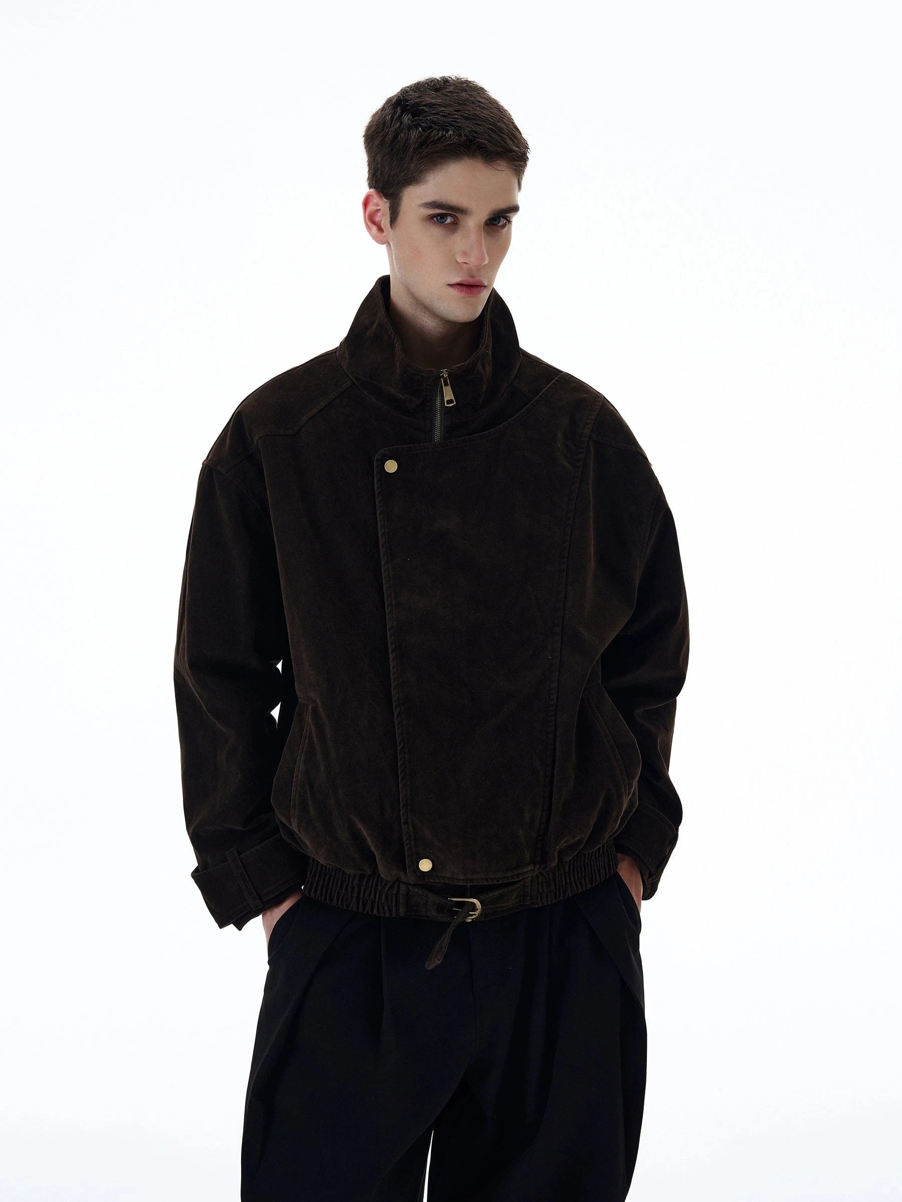 RT No. 20017 Brown Suede Collar Jacket offers a timeless blend of luxury and everyday versatility. Crafted in rich brown suede, it features a classic collar and a relaxed, loose-fit silhouette that layers easily over tees, knits, or lightweight sweaters.