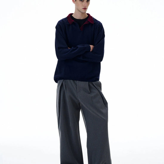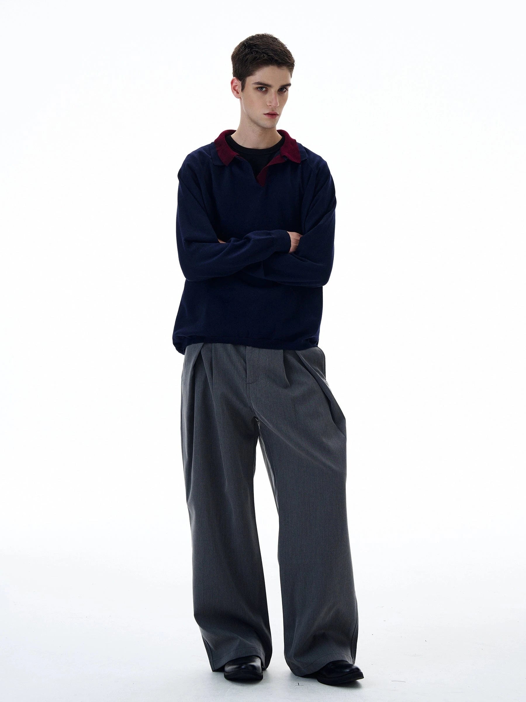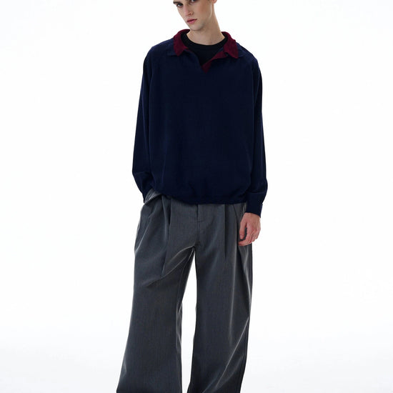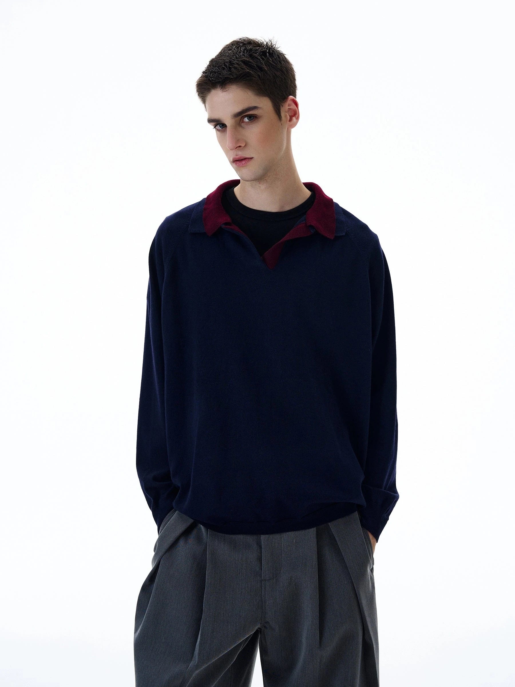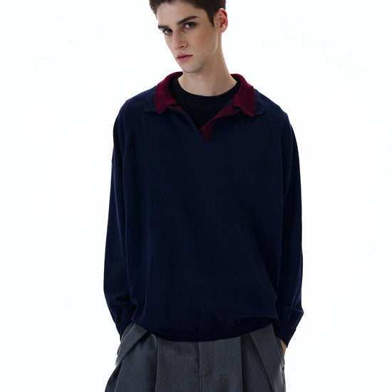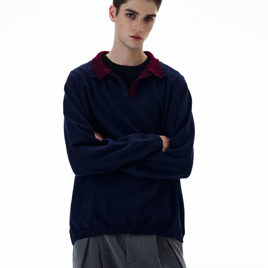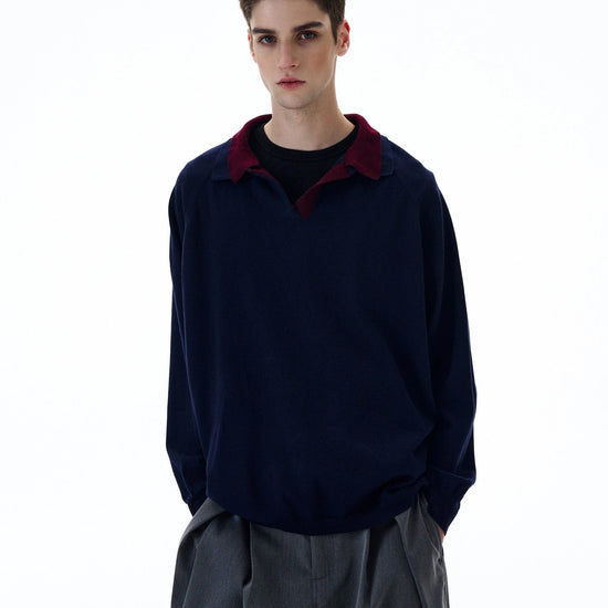 RT No. 20023 KNIT NAVY POLO COLLAR SWEATER