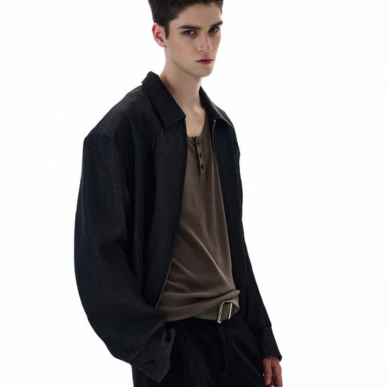 Ideal for layering over tees, hoodies, or lightweight knits, this jacket adds a refined edge to your wardrobe. Embrace effortless style with the OKANE Black Zip Jacket—equal parts versatile and contemporary.