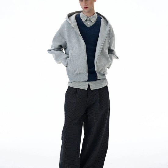 In a neutral gray, this zip hoodie delivers easy on-and-off comfort with a practical front zip and roomy kangaroo pockets. The loose fit provides relaxed drape for effortless layering over tees or under jackets.