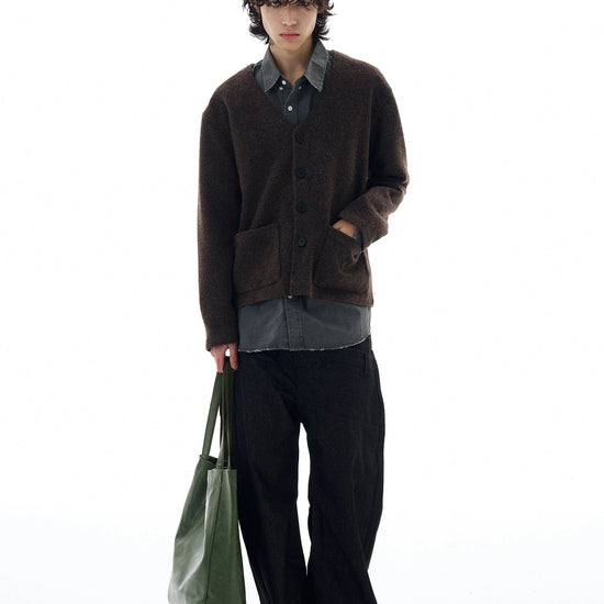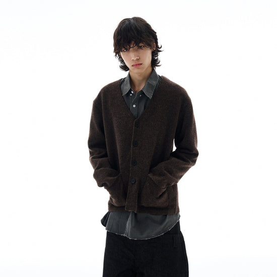 Refined and enduring, this brown woolen cardigan embodies timeless luxury through expert craftsmanship and a heritage-inspired approach. Woven from a premium woolen blend, it drapes with ease and promises enduring warmth and character.