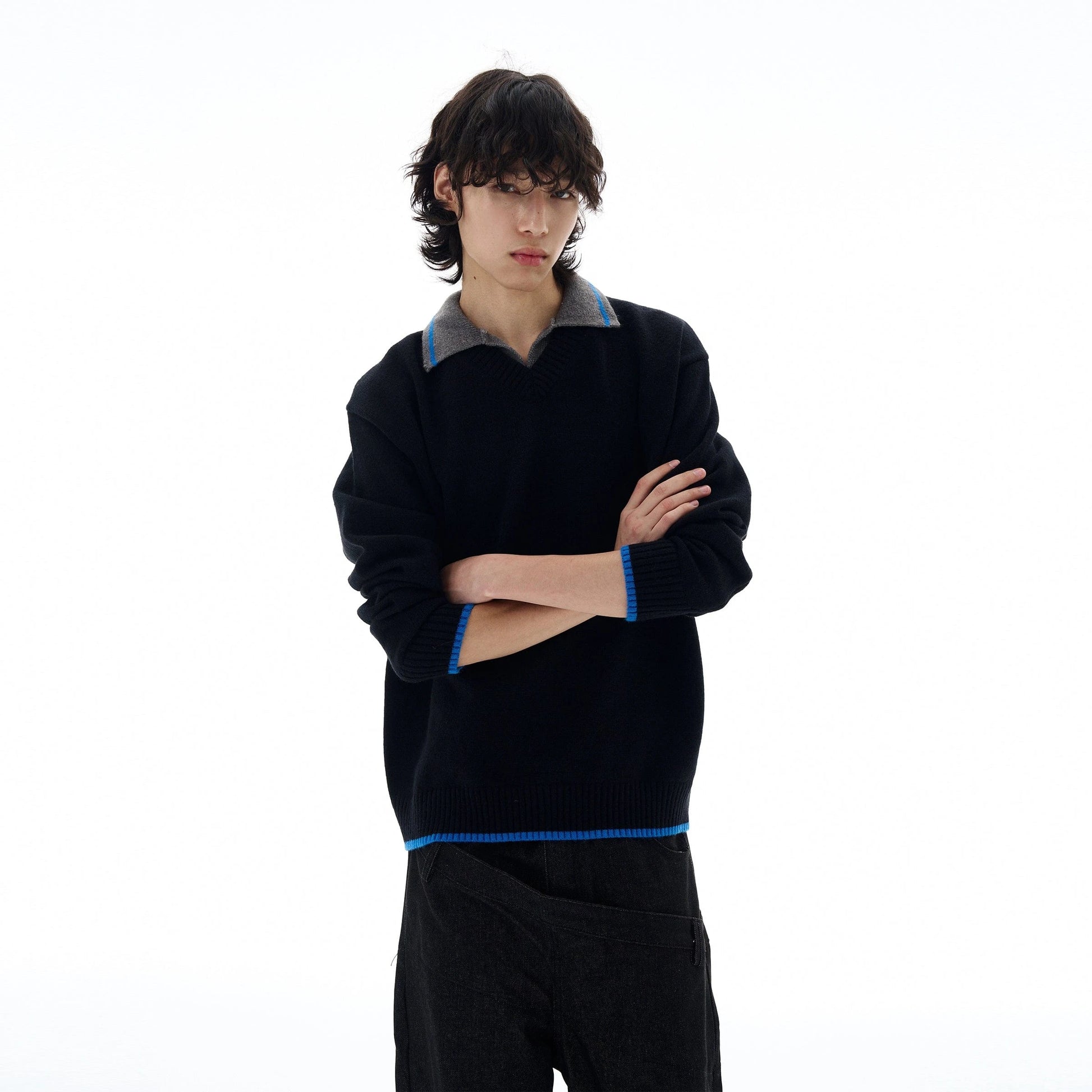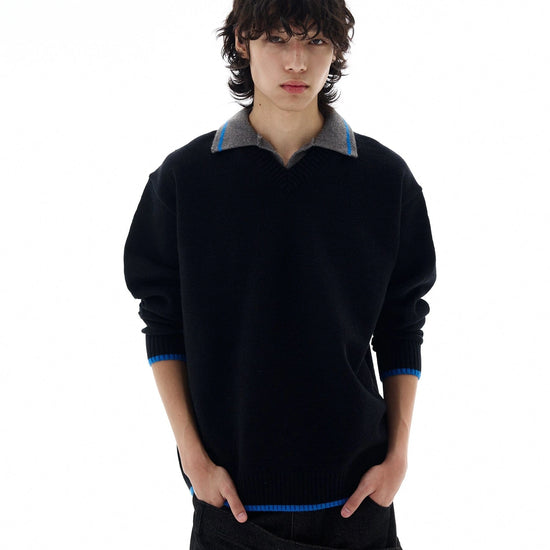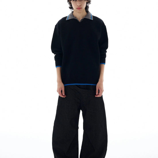 RT No. 25063 BLACK KNITWEAR COLLAR SWEATER