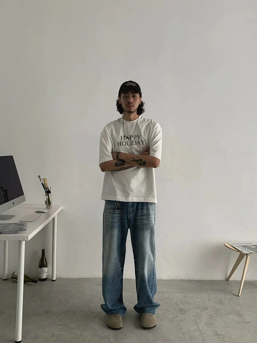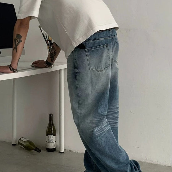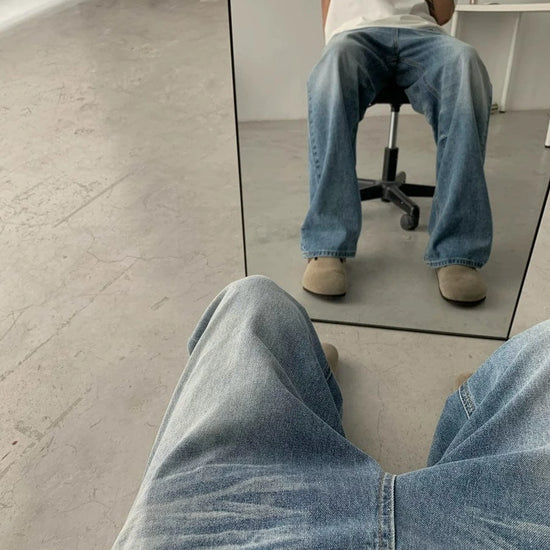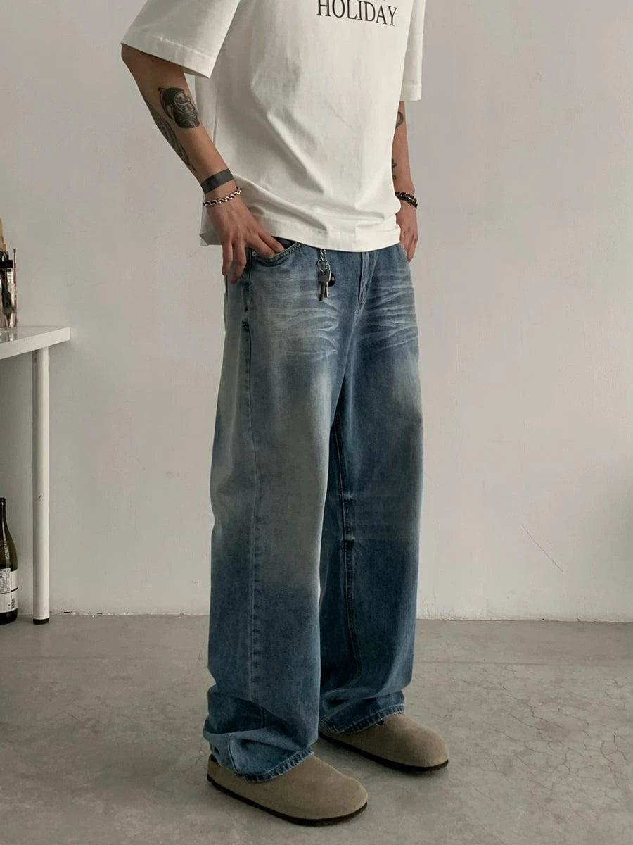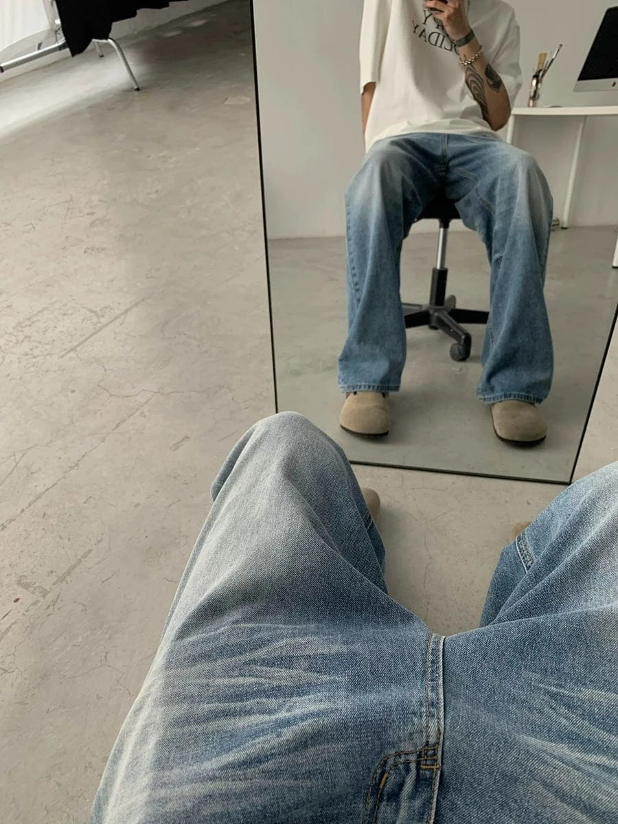 RT No. 29141 WASHED DENIM STRAIGHT JEANS