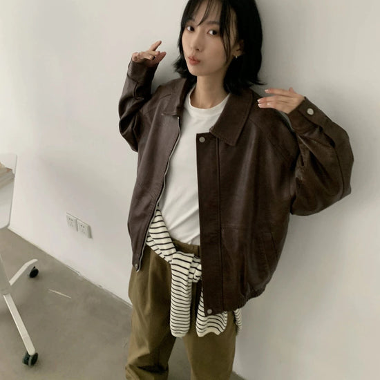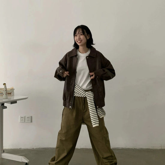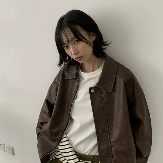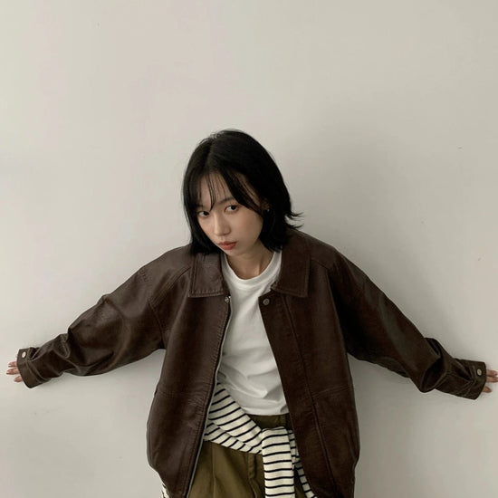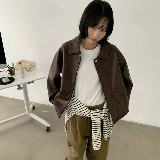 RT No. 29155 BROWN ZIP LEATHER JK