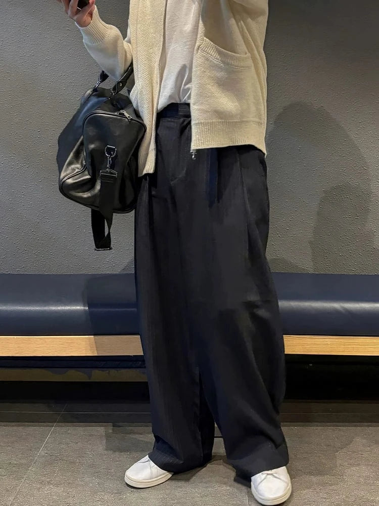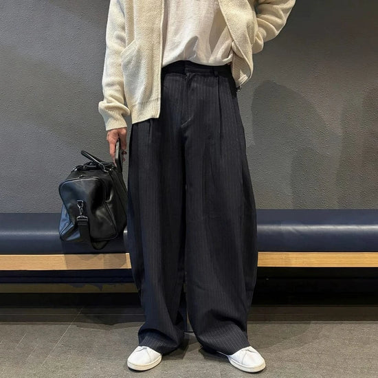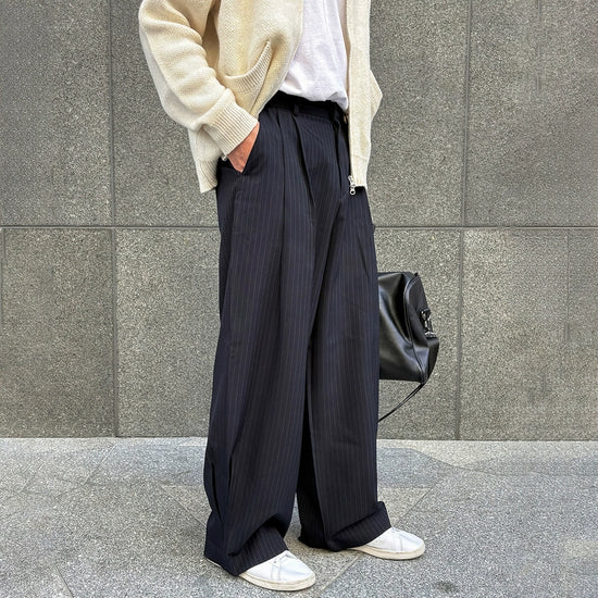 A refined presentation of enduring tailoring, this pair embodies quiet luxury through time-honored craftsmanship and measured proportions. Crafted from premium fabrics, it blends classic pleats with a striped motif for a timeless, collector-worthy silhouette.