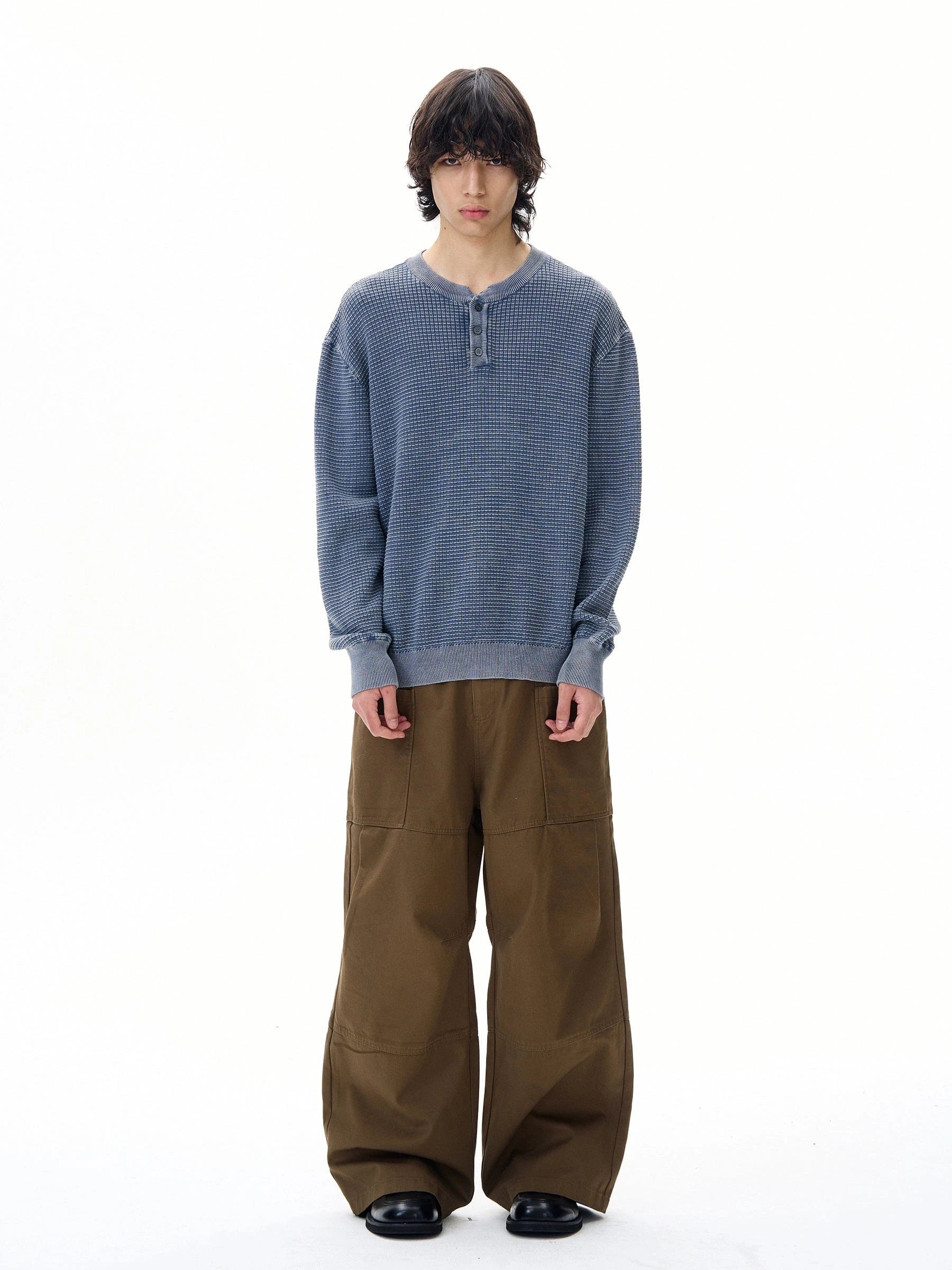 RT No. 31006 WAFFLE KNIT HENRY COLLAR SWEATER