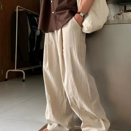 A refined pair of linen pleated straight pants that embodies quiet luxury and enduring value. Precision tailoring and breathable, natural fibers deliver a timeless silhouette and lasting appeal, suitable for refined wardrobes and thoughtful collection curation.