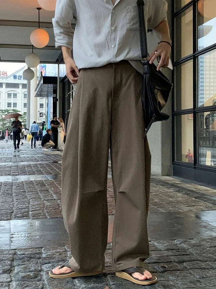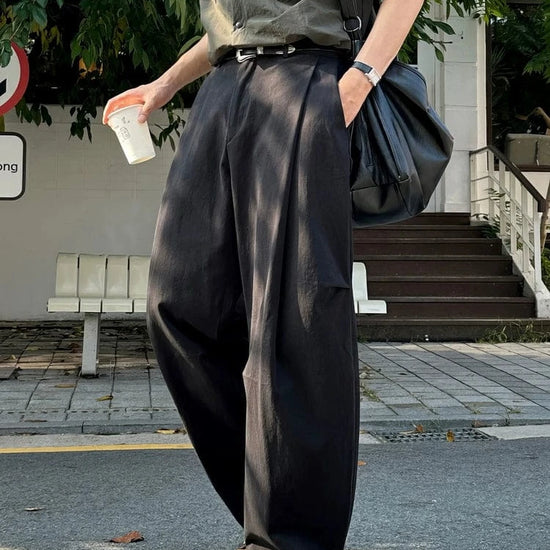 Refined tailoring meets enduring appeal in these pleated straight-drape pants, crafted with quiet precision and rooted in timeless craft. A nod to heritage workmanship and premium finish, they offer lasting value and a discreet mark of refined taste.