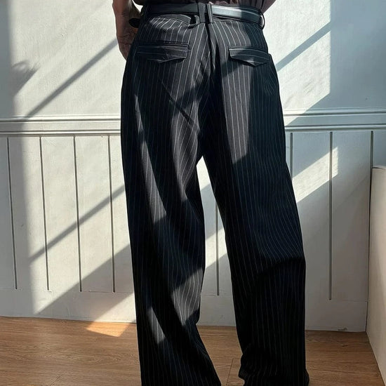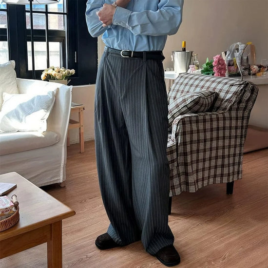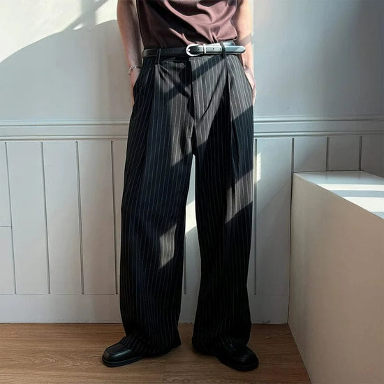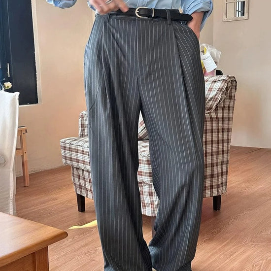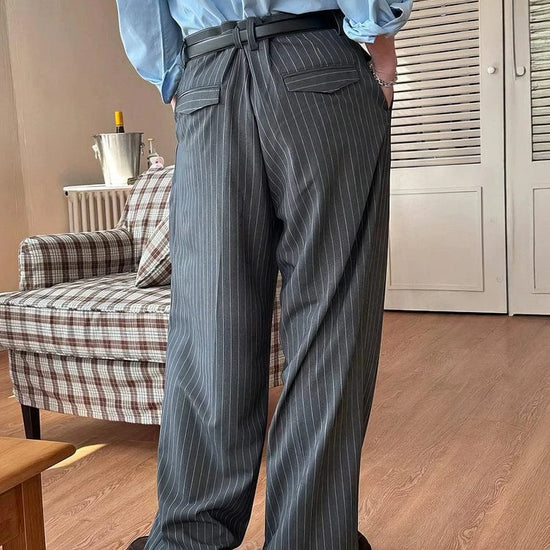 These pleated striped wide-straight pants embody timeless tailoring, with provenance-backed craftsmanship and premium materials that confer quiet luxury and enduring appeal.