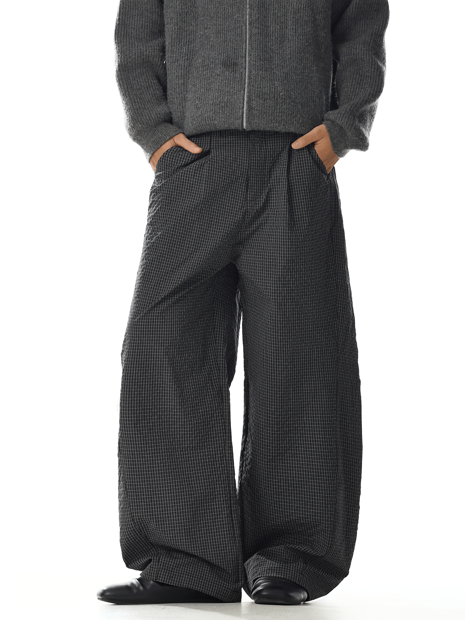 RT No. 32010 PLEATED PLAID SCIMITAR STRAIGHT PANTS