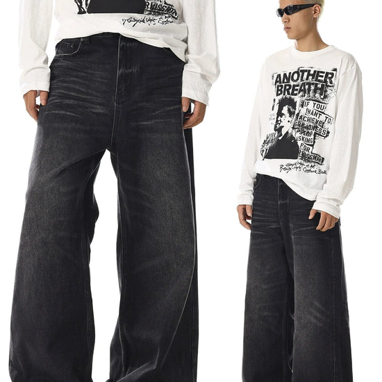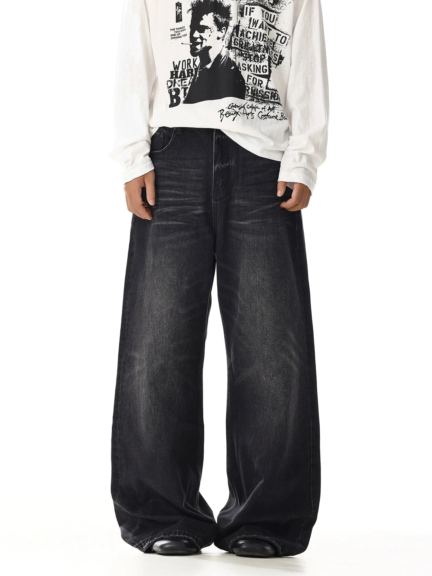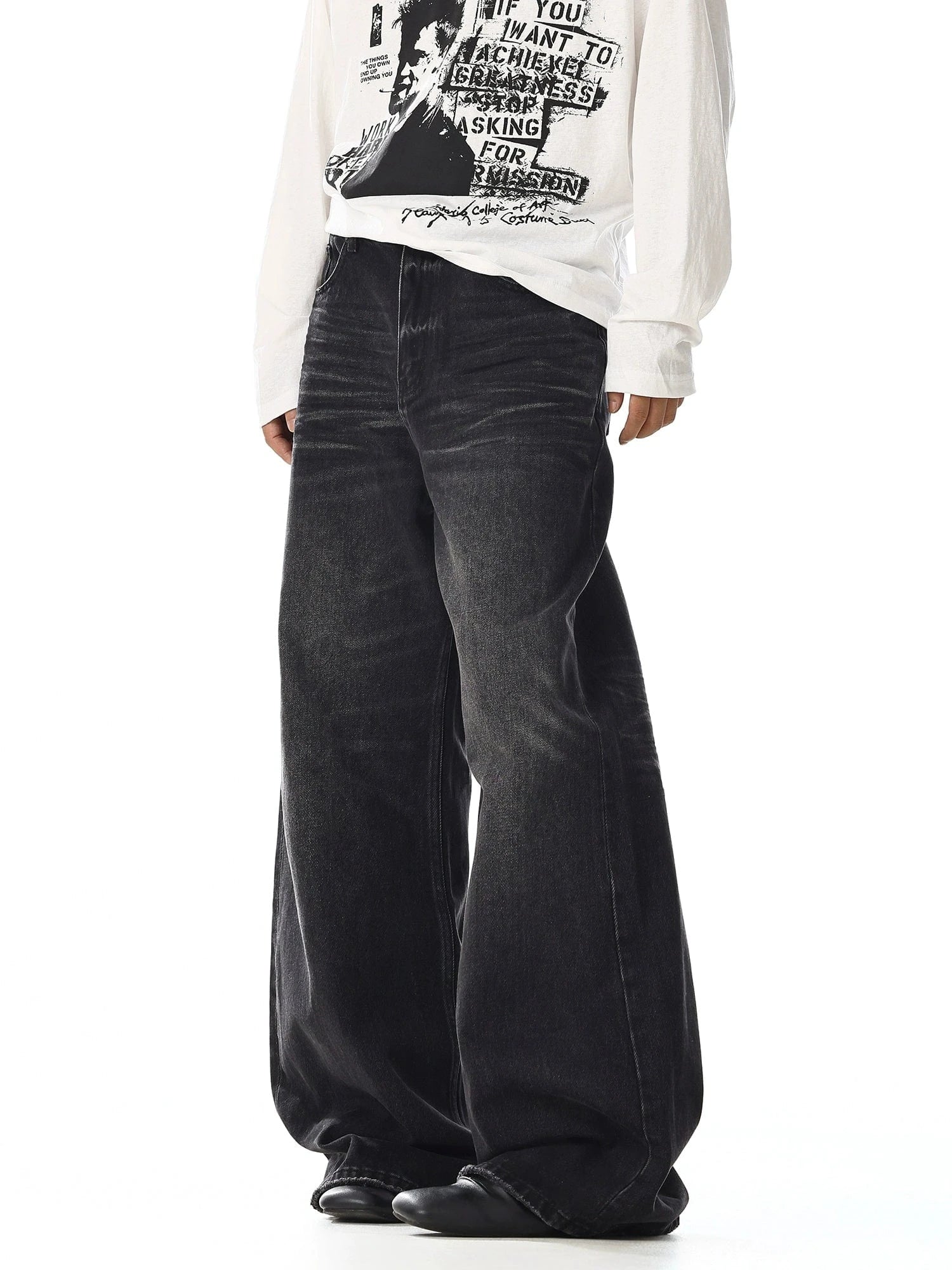 RT No. 32025 WHISKER WASH WIDE STRAIGHT JEANS