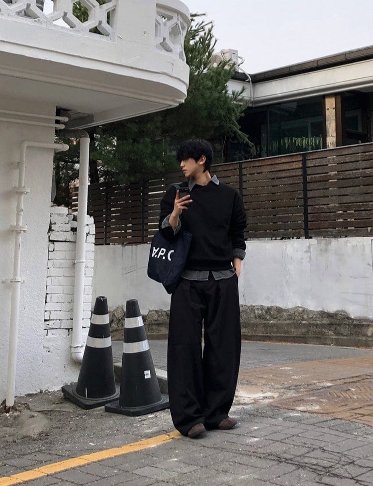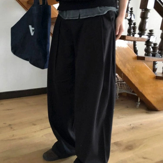 RT No. 32035 PLEATED BLACK WIDE BAGGY PANTS
