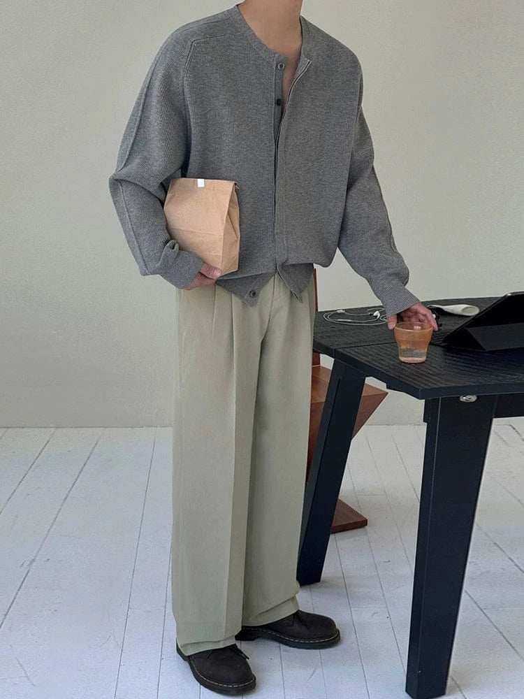 RT No. 32037 GRAY KNIT CARDIGAN SWEATER