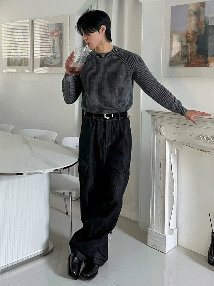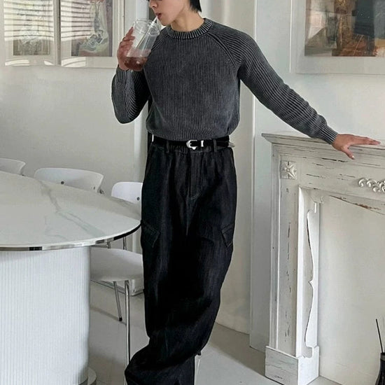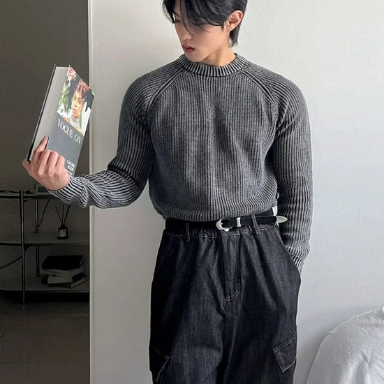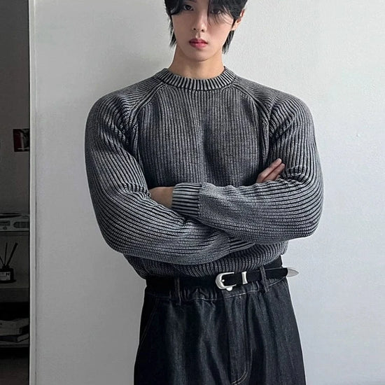RT No. 32054 GRAY KNIT TEXTURE SWEATER