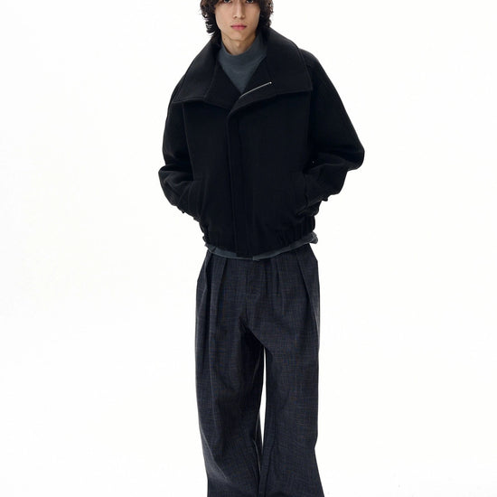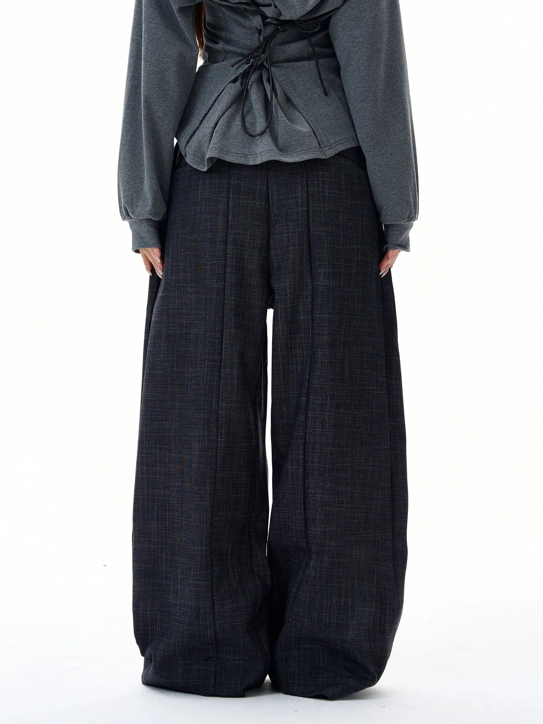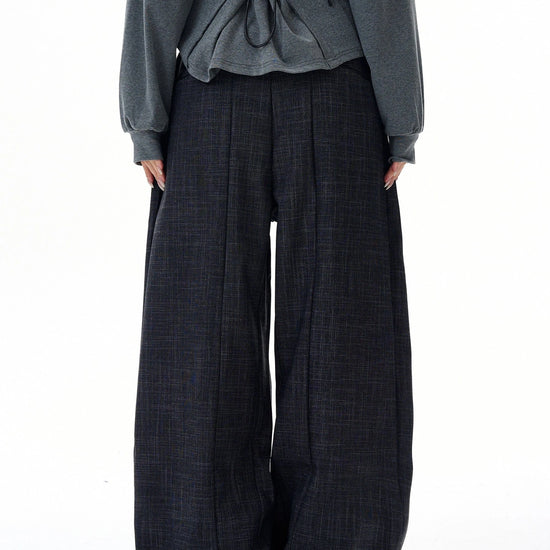 - Pleated, relaxed baggy silhouette with refined drape for versatile styling.